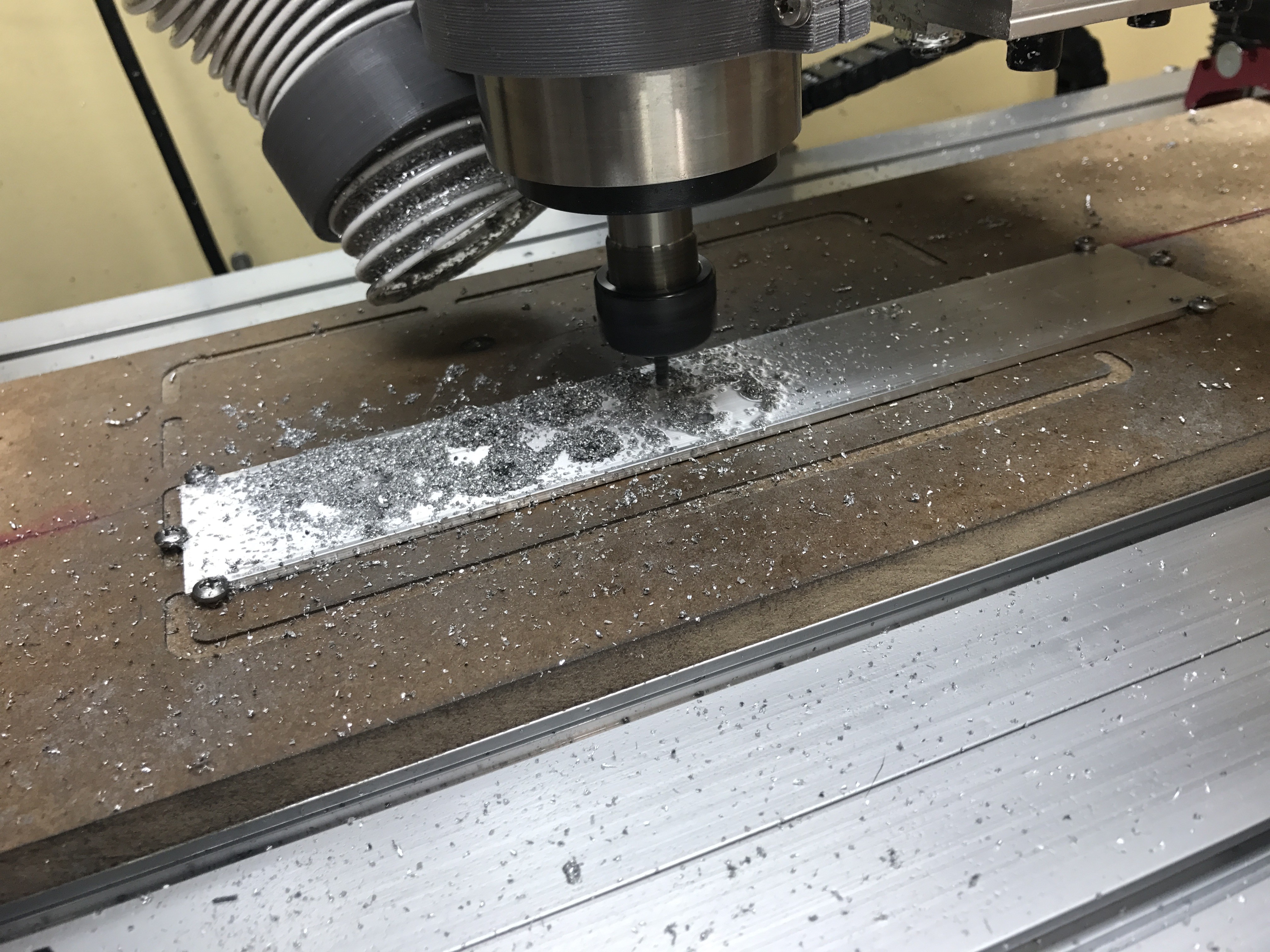 There is something quite fantastic about being able to fabricate your own parts for a big project. I’ve got my Chilipeppr powered 6040 dialed in for this aluminum, and it cuts like butter.