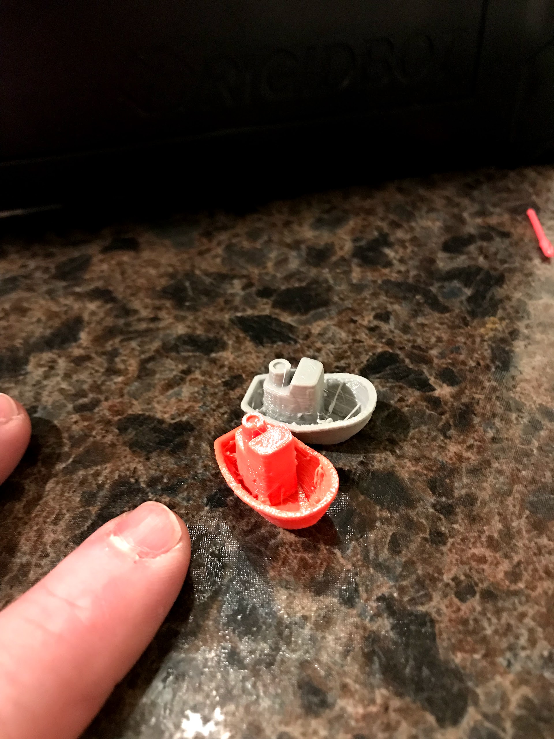 These little boats were so quick and easy. This was what I printed for a quick 3D printing demonstration for some cub scouts. I had the speed up, which explains a bit of the stringing. They are exactly 1 gram each. I put my finger in the photo to give you a reference for size. And yes…they float. https://www.thingiverse.com/thing:977873