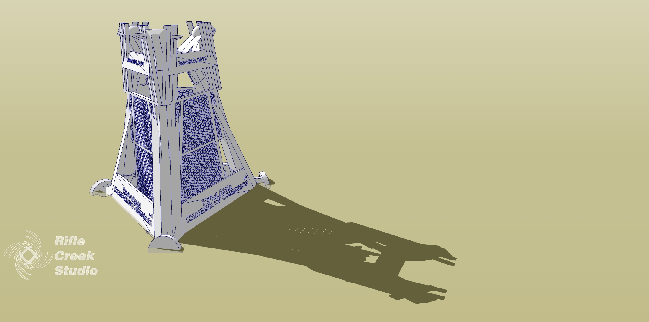 This is a table lamp for our Chamber of Commerce Dinner. We ran a test print of this and although without color, and unsealed, the effect of the changing LED lamp colors can still be demonstrated.
