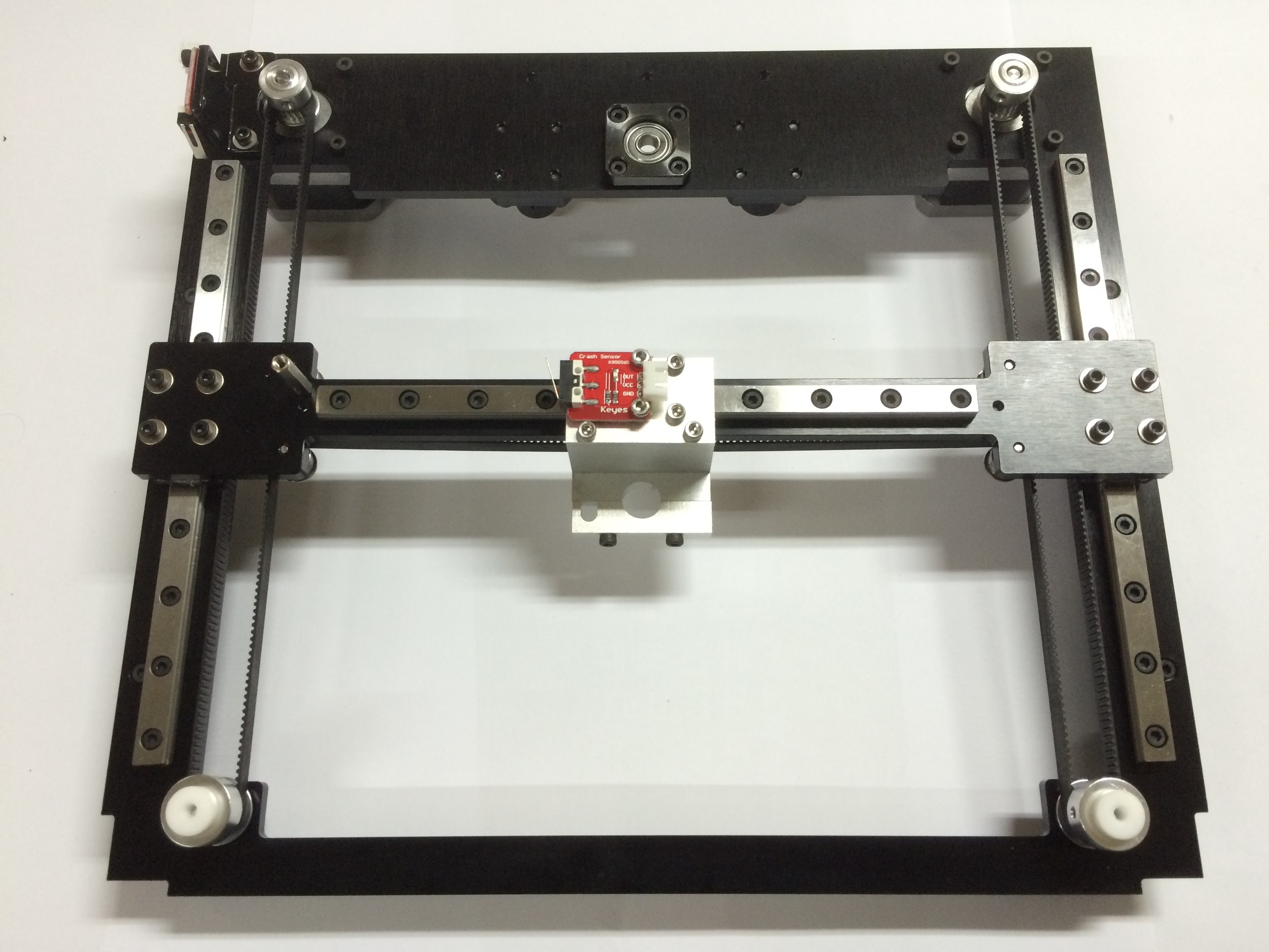 I decided to use linear rails and machined aluminum frames for stiffness of the system. Before I go for real implementation shown in photos, I got pretty promising result from the test by laser cut acrylic frames and linear rails.