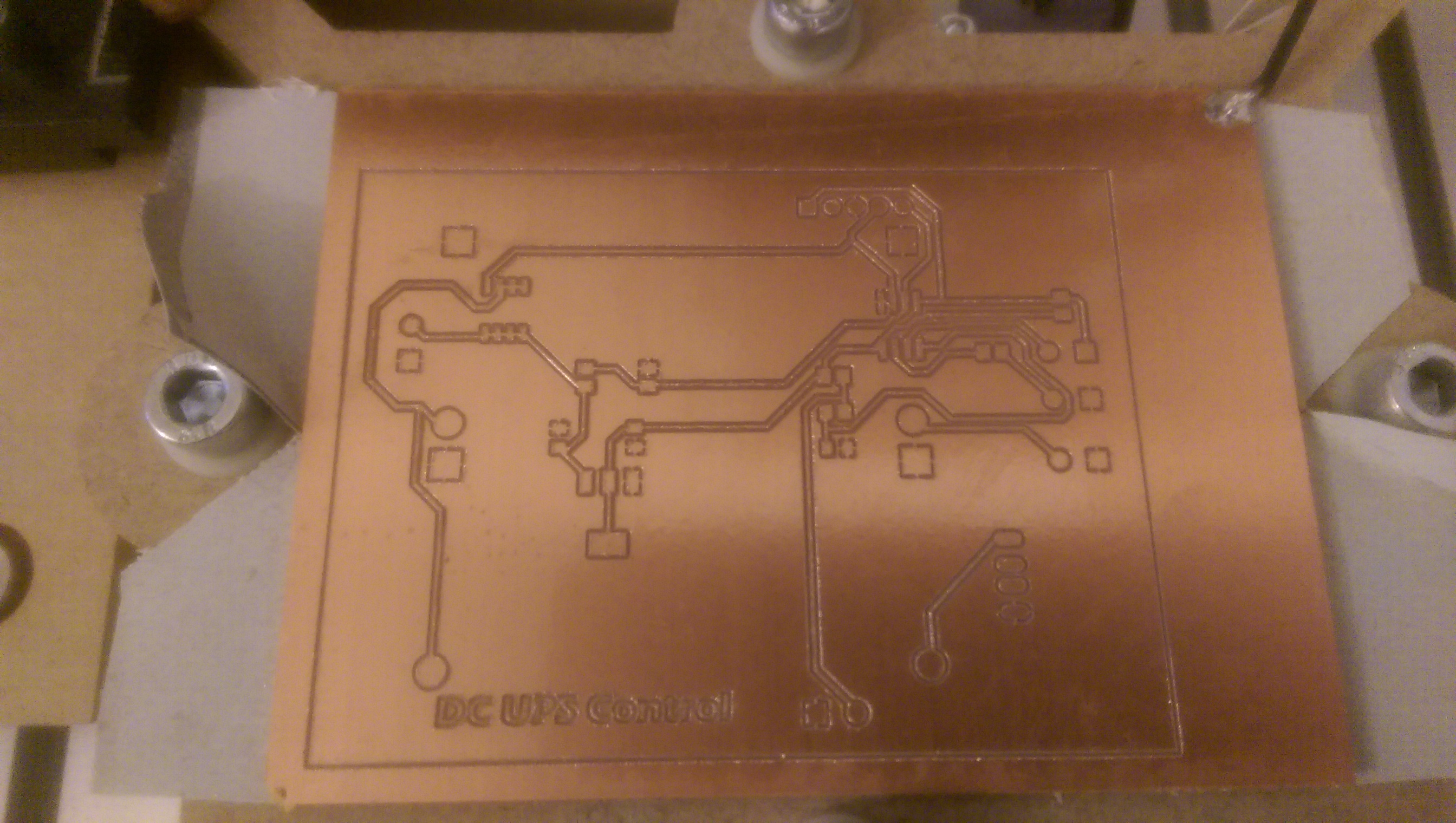 Board designed in Eagle, CP generated the gcode, I manually wrote the gcode for drilling the holes.