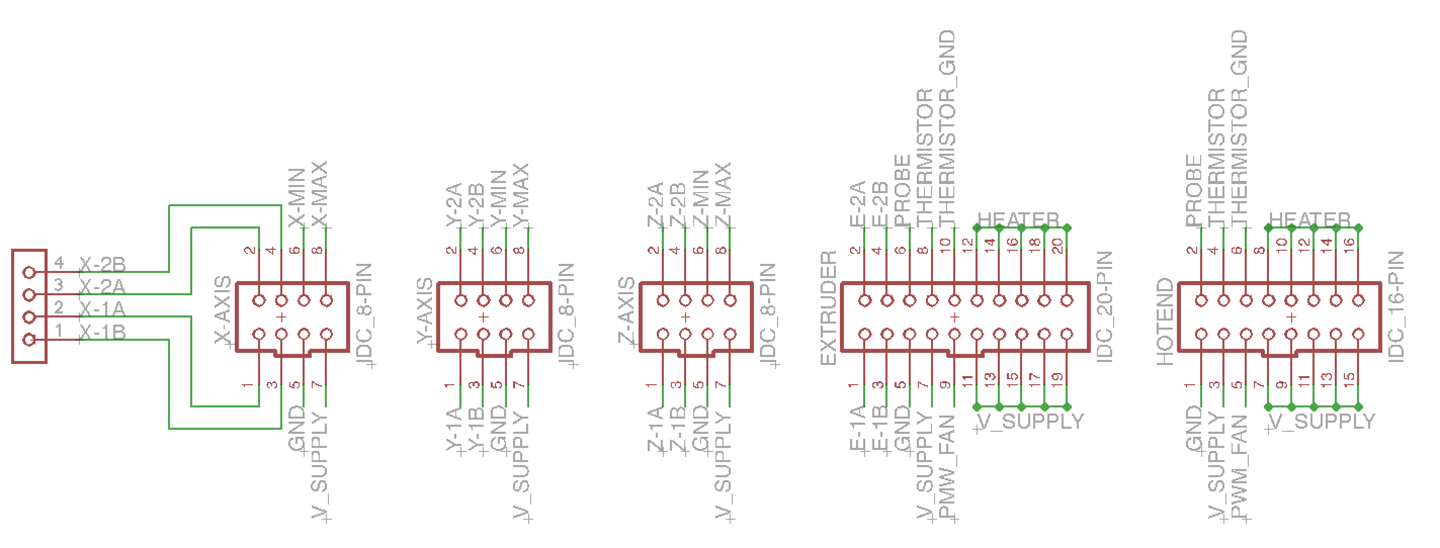 Also, the motor/endstop cables can be abbreviated from 2x4 to 2x3 if you’re using simple MIN-only mechanical switches with soft pull-ups.