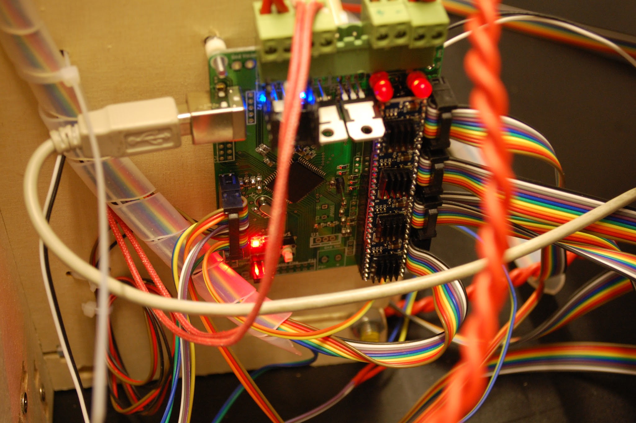 This is my rework of popular reprap board teensylu. I designed it with yru(author of golem, yegah and other reprap stuff). I made some upgrades, and added pull-down resistors to step/dir signals. More soon:)