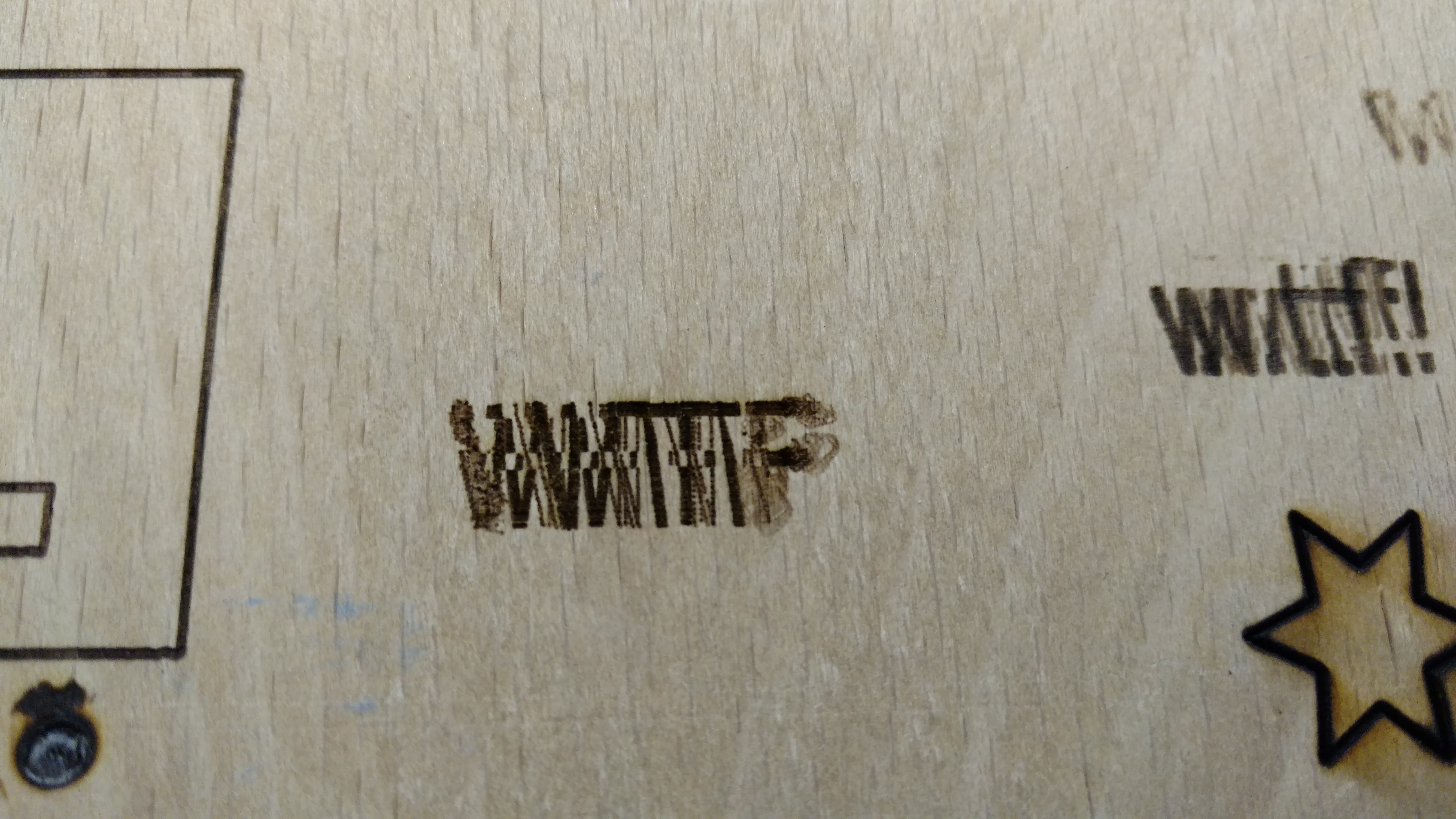 This is the problem I’m currently having in MKDuo (ramps 1.4). 2nd image shows three test lines (amongst the stuff worked fine) which are basically really wobbly. Any ideas? Have upgraded the software and the laser head recently… Hoping it’s not mechanical.