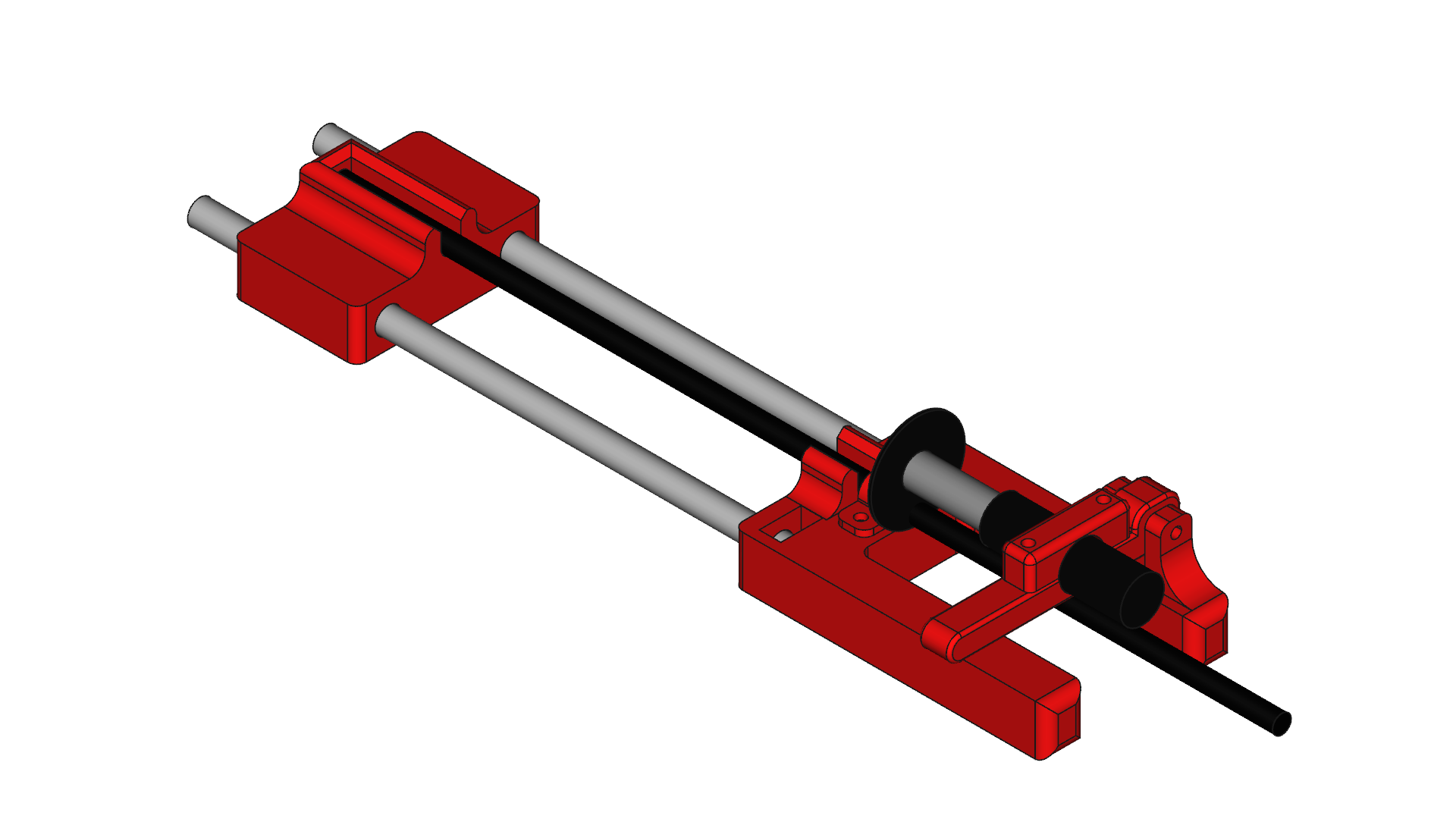 This is what 4 hours in CAD gets me, a 3D Printable rotary tool (Dremel) adjustable Delta arm cutting jig for 6mm Carbon Fibre OD tube. My rotary tool (cheap one) has a flexible extension so it clamps that in place on a hinge, The long rods are 8mm threaded bar which screws into the cutting side held in place by nut traps and the endstop is held in place by nuts and washers once set to the correct size.