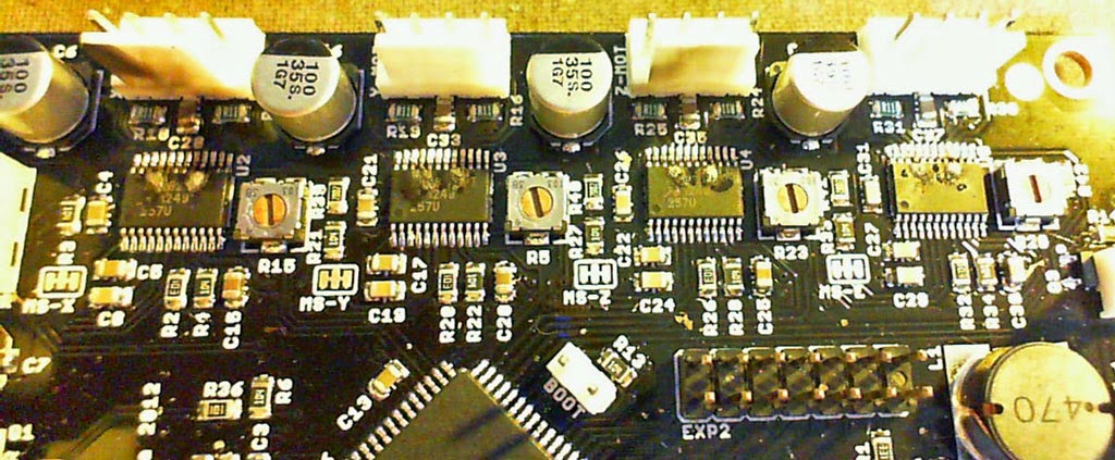 My first spectacular failure, I had a spool loaded on top of a Mendel/prusa, and started a print over night. Spool fell off into the X-Axis, causing the X- to MAX, then the spool continued to fall onto the heatbed. where it promptly broke the Hot end retaining collar, and then the extruder continued to drive fitment until the Hot end, snaked it’s way into a Stepper controller where it finally stopped moving. but it did NOT stop heating. the hot end burned it’s way through the Stepper Driver I.C. it took out not only the Stepper, but also the Ramps 1.4 and it’s accompanying Arduino Mega.