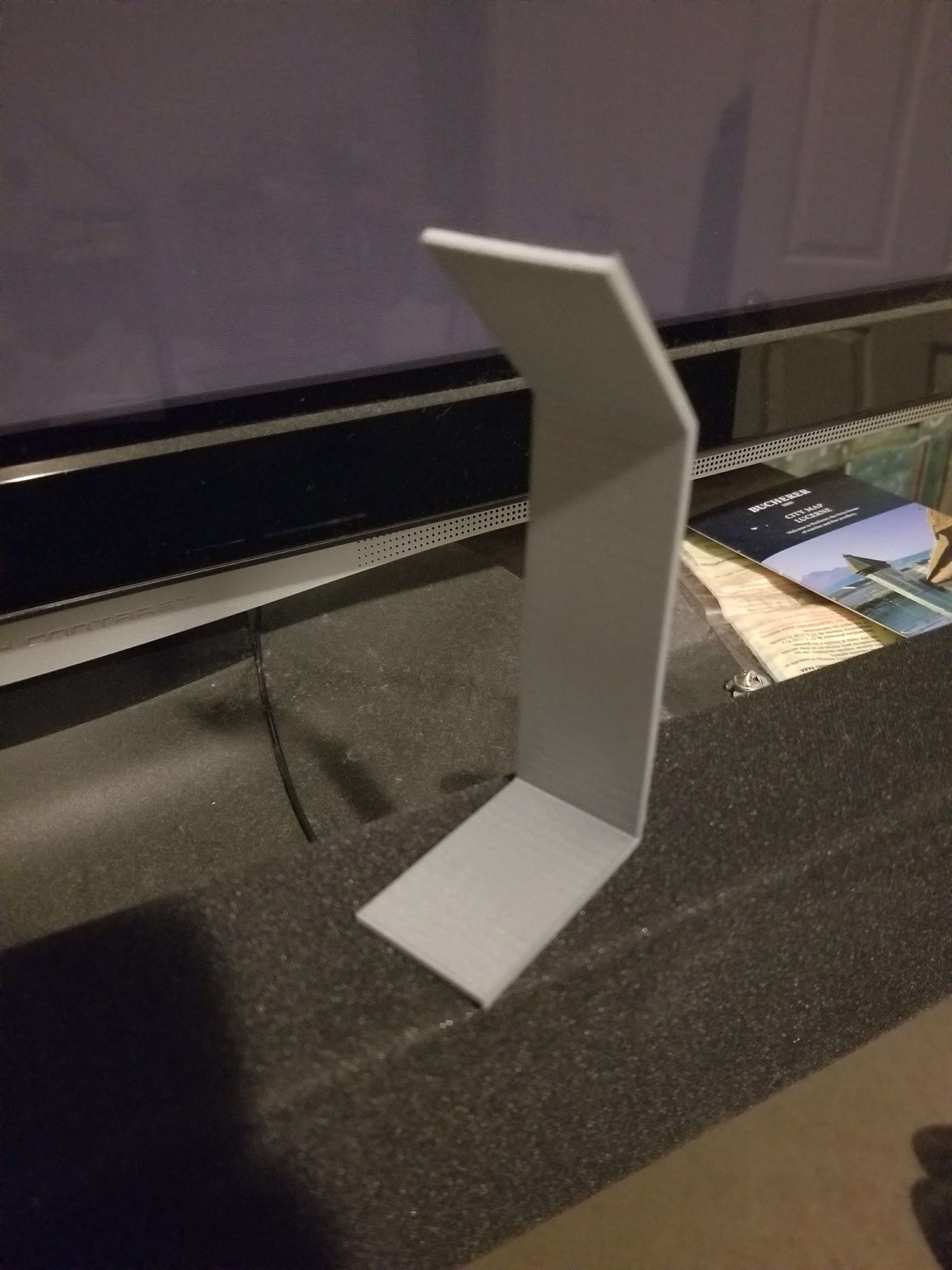 So I got a new sound bar for the TV in the bedroom, and for some stupid reason the REMOTE IR sensor is on top of the unit, so when you try to use the remote from the bed it doesn’t work. Unless of course your arms are 5 feet long and you hold the remote real high. 3D print to the rescue, fab, print, install and 1 hour later problem solved. Now the remote works like it should from the bed, or anywhere else below the top of the unit.