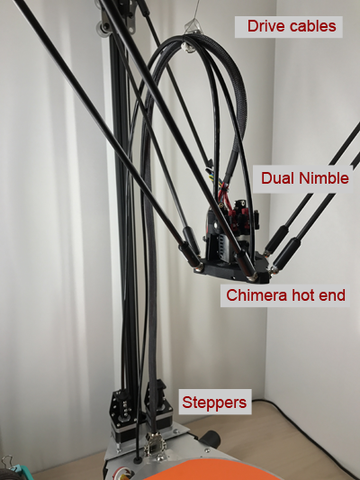 Sorry, the Zesty Nimble is an extruder. A remote direct drive extruder. So the stepper is mounted on the frame somewhere and the Nimble sits on the print head or effector, weighing less that 27 grams for the original Nimble.