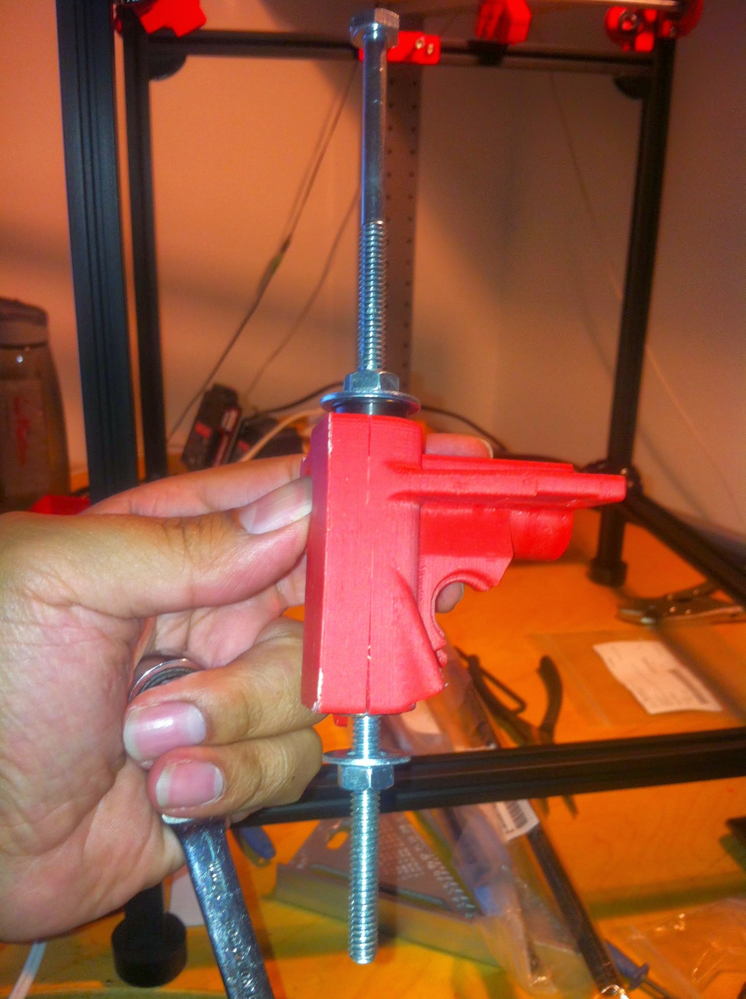 I tried heating it, and it didn’t help. The other bushing holes show stress also (but no cracking). I’ll glue it and I’m sure it’ll be fine. Considering how poor I assembled this one, I’ll print out a new set of parts and reassemble with new bushings. I hate having an ugly machine.