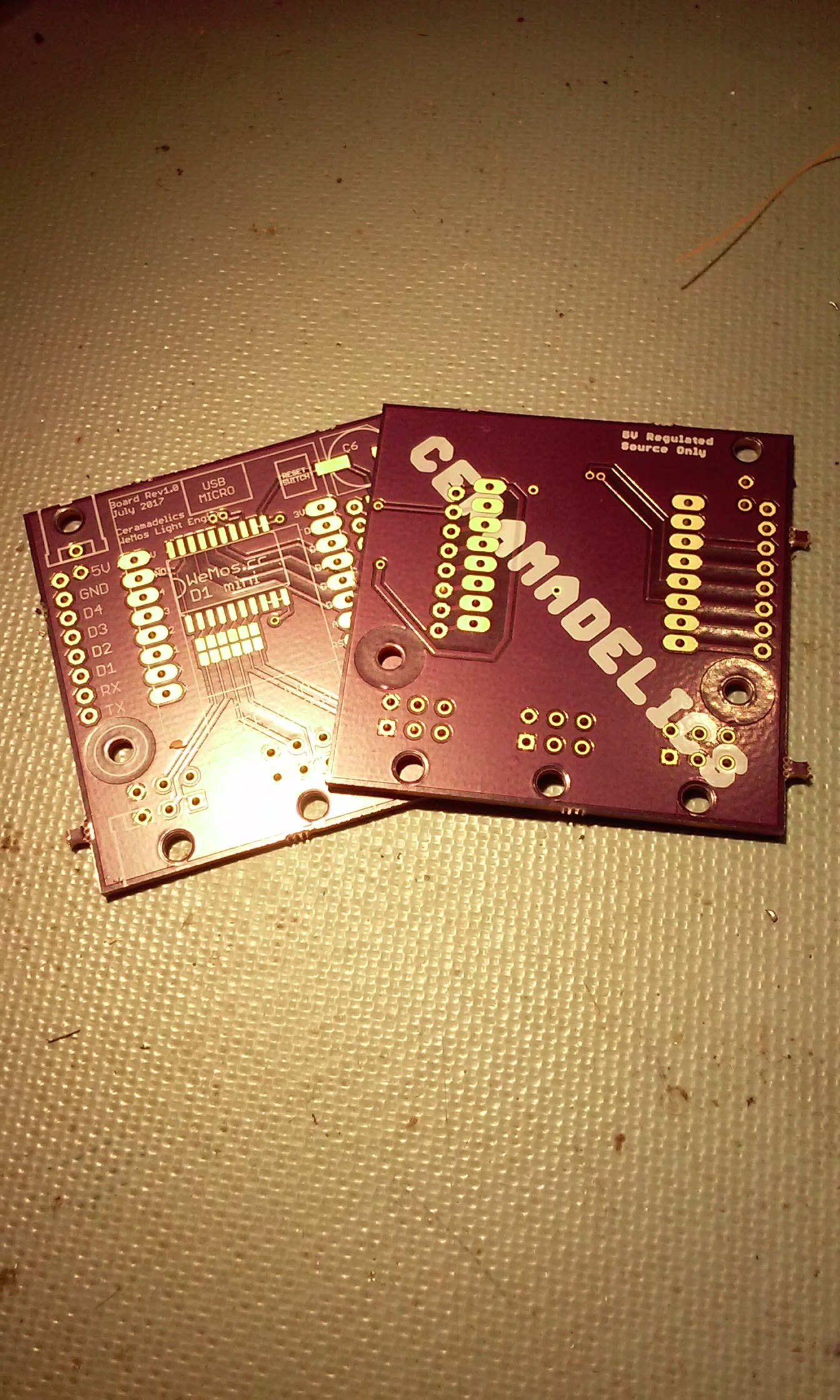 Big thanks to @Jason_Coon of Evil Genius Labs for laying the ground work for this new board. I switched his design to surface mount 74HCT245 and Molex Minifit for output to the strips and a small amount of support circuitry for other functions specific to our light pieces.