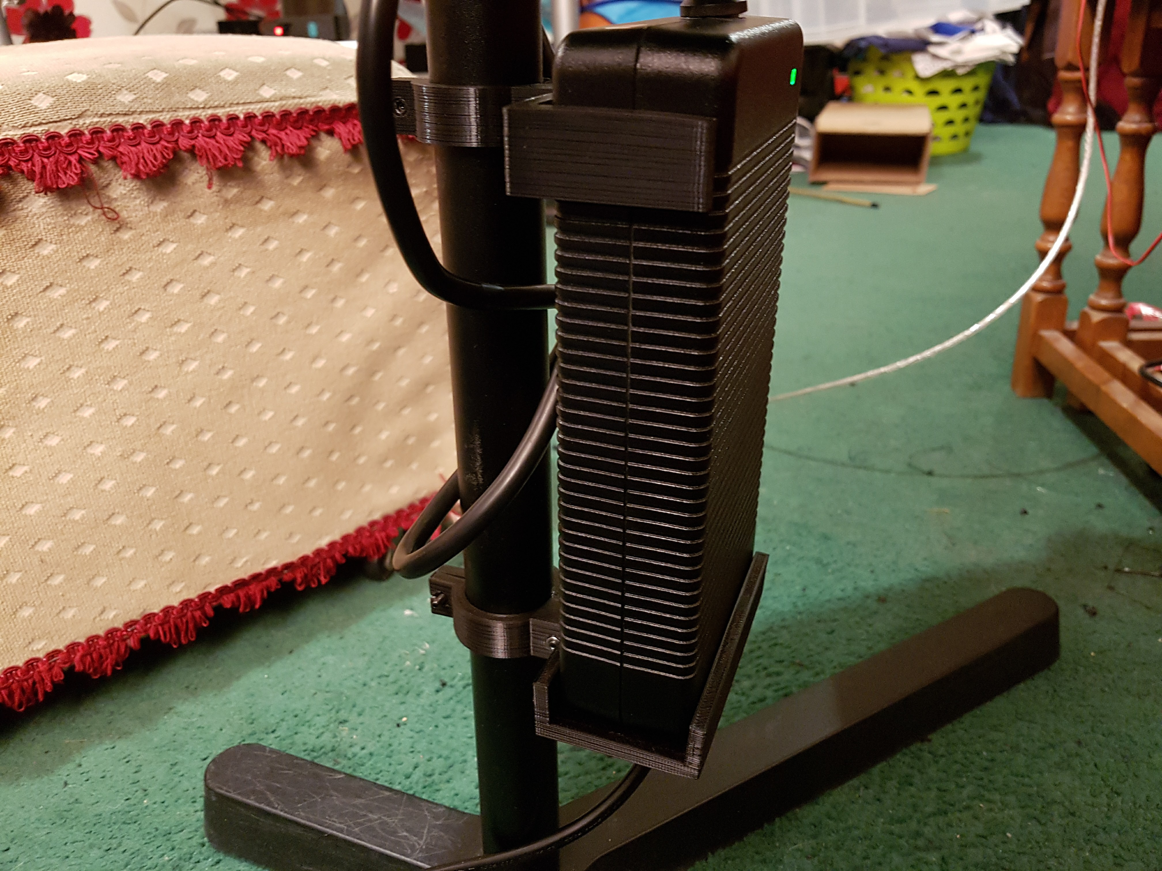 Thought I’d share my mount I made for my gaming laptops PSU to mount to a laptop desk I brought from ikea. Before I had the 3D printer I attached the PSU with a couple of cable ties but when I was thinking about getting a printer this is one of the things I wanted to design and print.