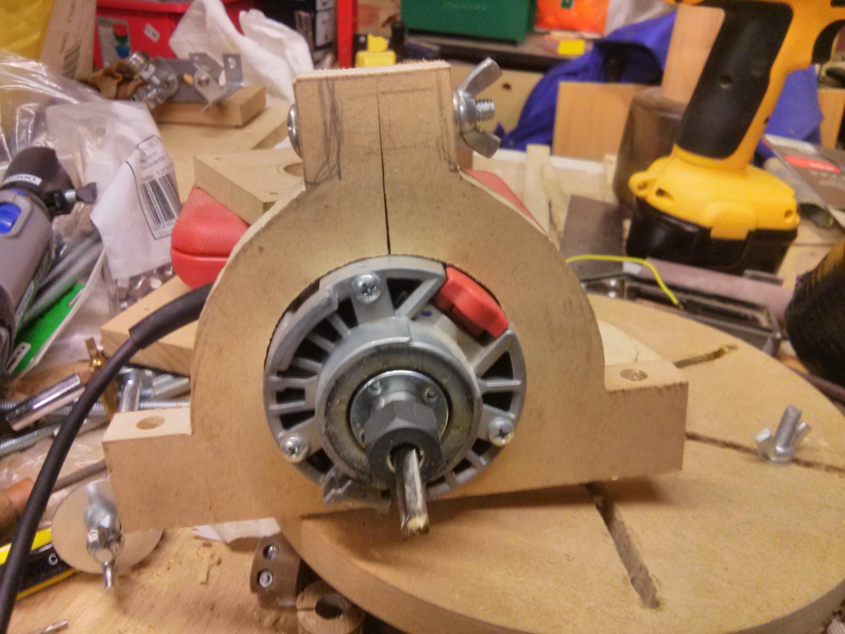 Today I started to make a better mount for my bosh router. The one I have right now was based on just bolting one of the standard bases to an mdf piece, then mounting that. However there are a bunch of problems with that. There is not much depth to play with between the bottom of the mounting plate and the tip of the tool.