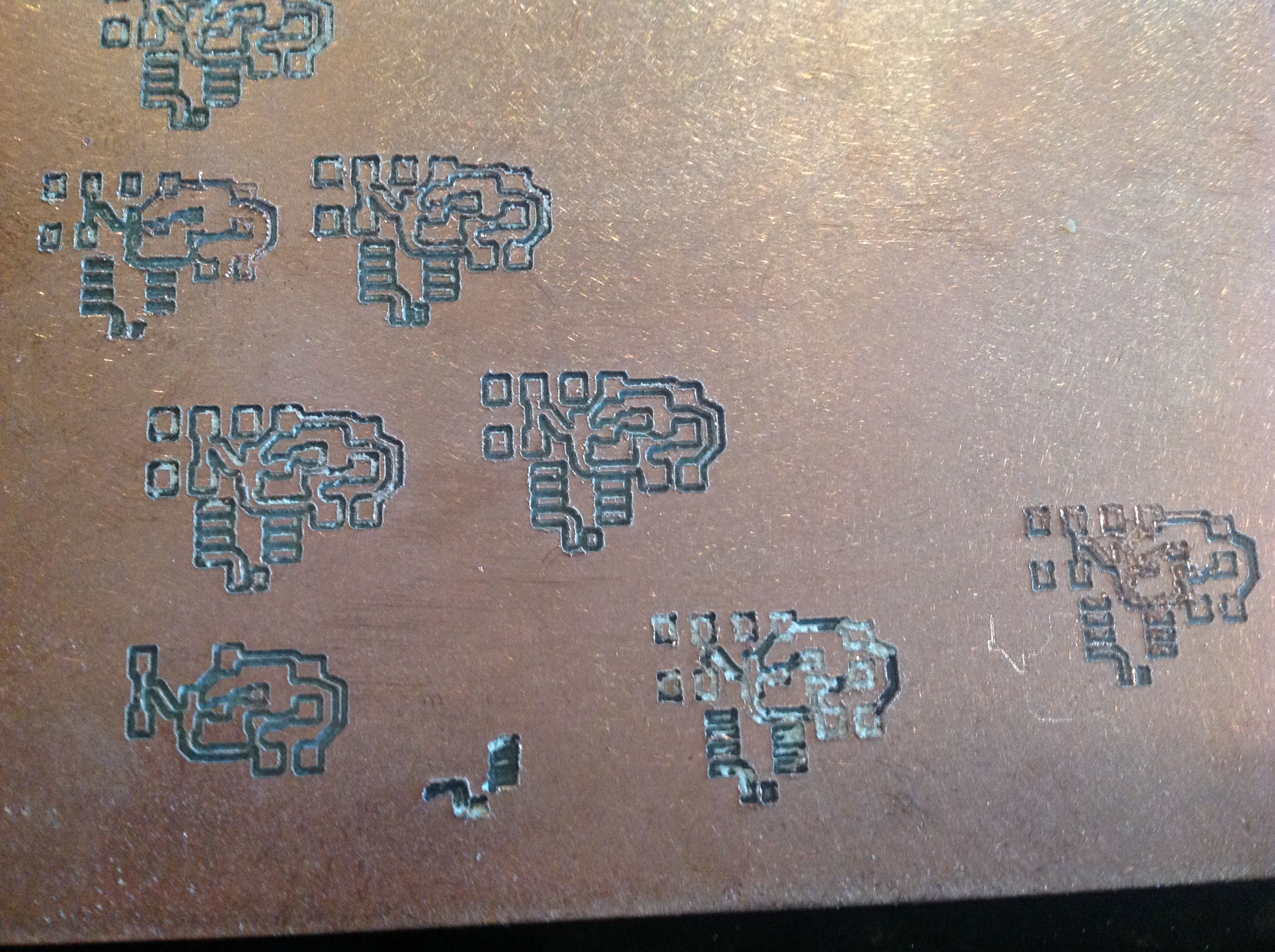 Today I’ve been dialing in the parameters for PCB isolation routing. I’m using a 30 deg etching bit from drillman1 off eBay. Best cut has been 15mil depth of cut with 3 mil steps. With a loop and calipers I’ve been measuring a cut width of 25mils. (Runout not measured) The vacuum table is working well but I perceive a variation of at least 3 mils change in elevation . At about 0.5 mil is from the stock. 1206 size components will be doable 0805 perhaps and 0603 size if I’m very lucky. The test piece had all those and an SOIC8 package. Through hole components should be no problem.Not bad for a 1Mx1M cnc machine. Photos by the Lumin app on iPad