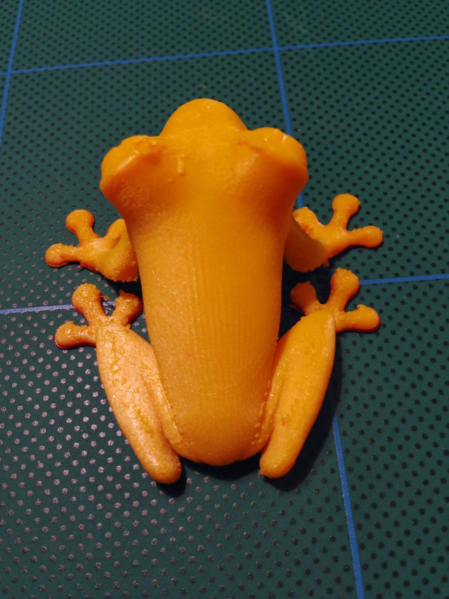 Treefrog test print at 0.03 mm layer height. Came out pretty ok. The vertical lines on the back seems to be part of the model. Trying 0.015 next.
