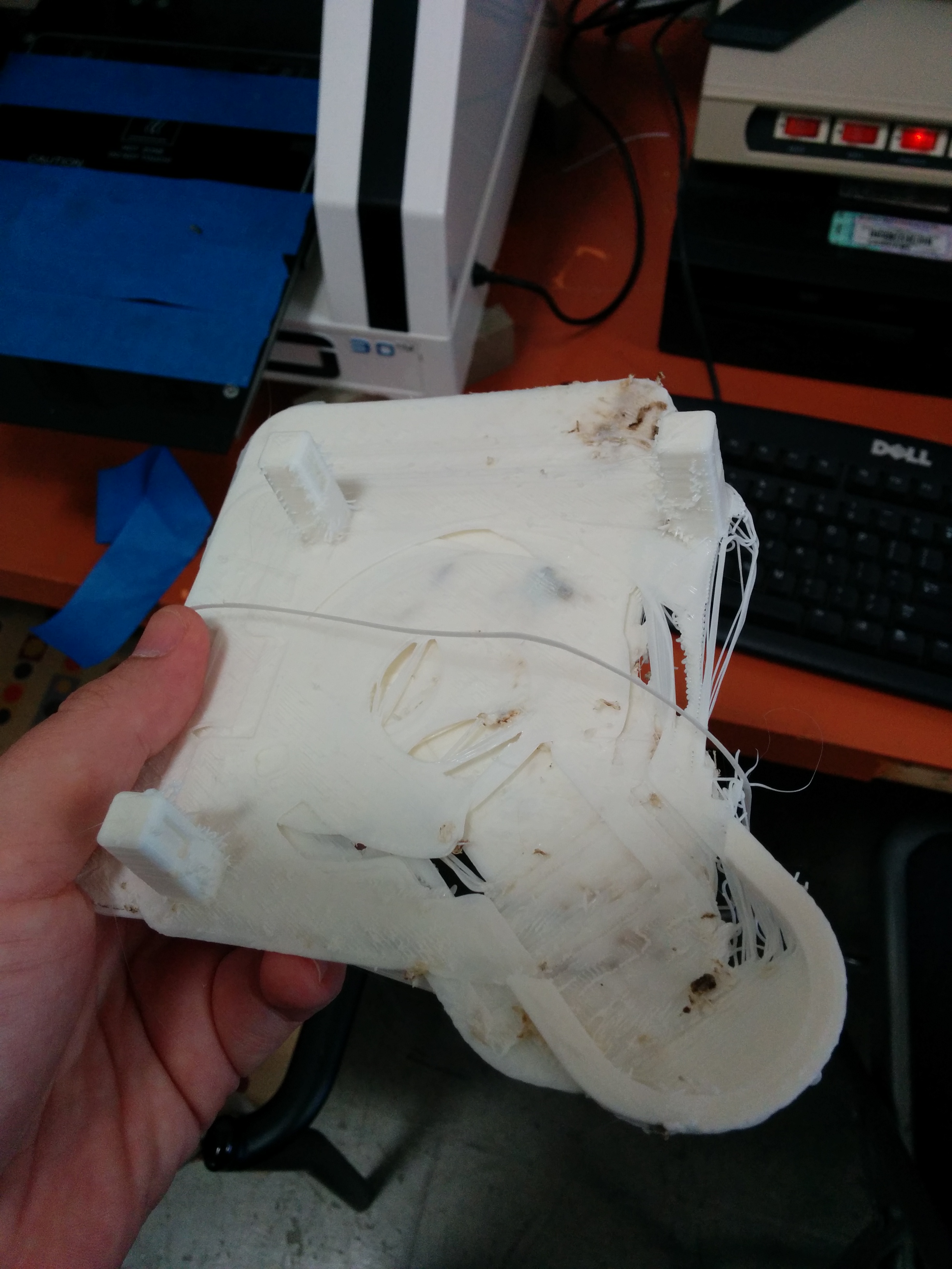 Did plastic not adhere to the bed and get overheated on the extruder, causing it to finally let go and cause skipping?
