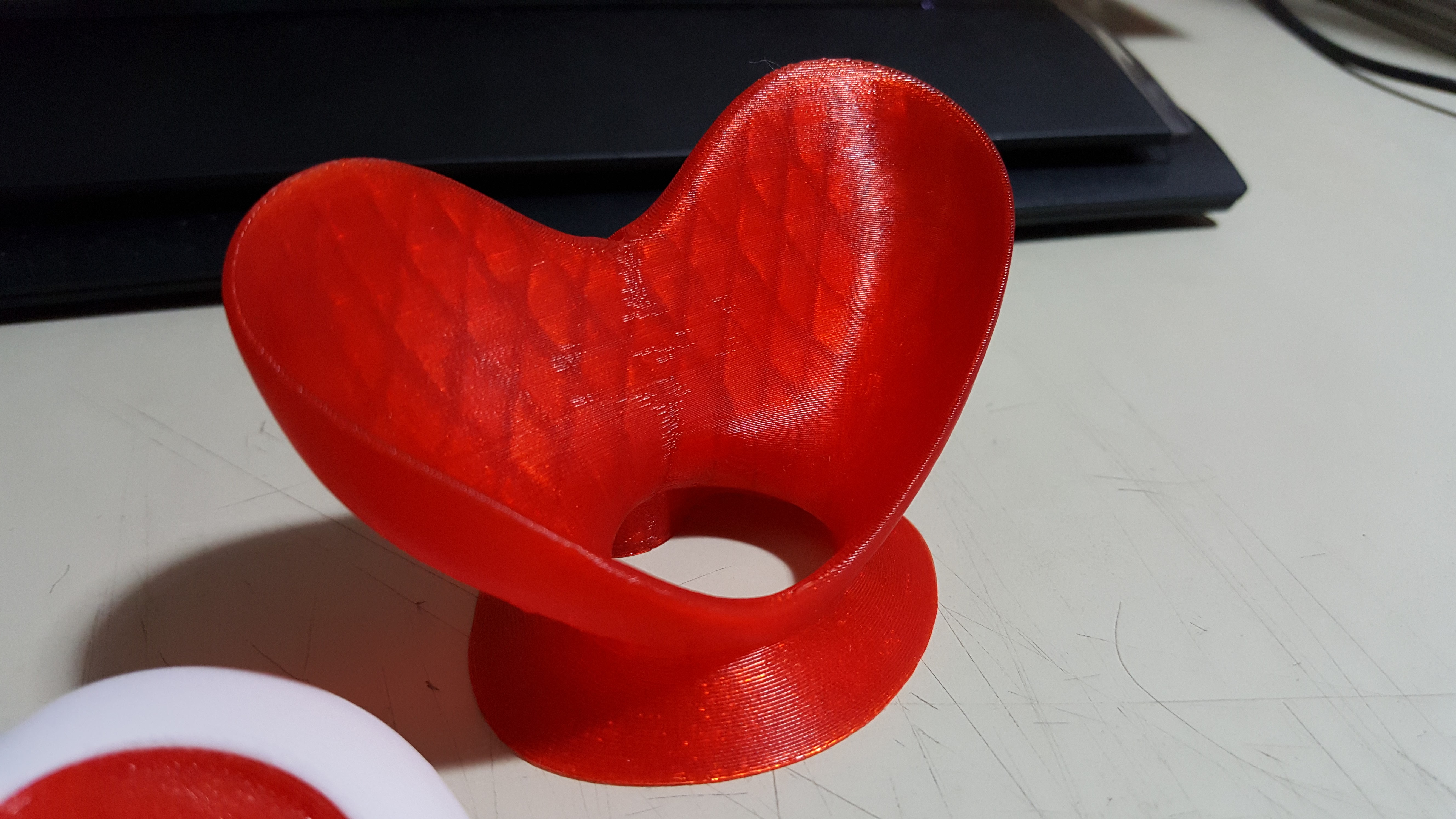 Update image for the Heart Box project. The red stand is coming out great even at .2mm 50mm/s rushed print settings. IN-PLA Red, freaking love this stuff hope Taulman continues to make it. Second to last image shows a weird overhang error I am getting on only one side of this mirrored form that is supposed to be symmetrical
