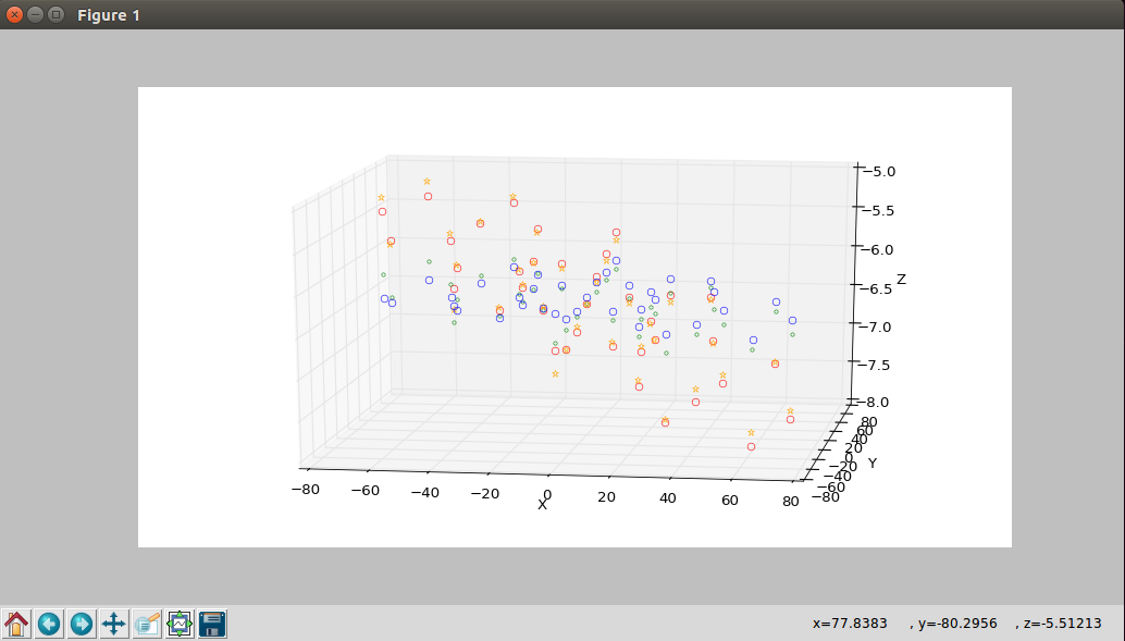 What I have now is a way to probe (G29) which gives consistent results and shows a bed at a slight angle with around 3mm difference between highest and lowest point. Plotting that data (red circles in the picture) shows that the data is in fact on a plane.