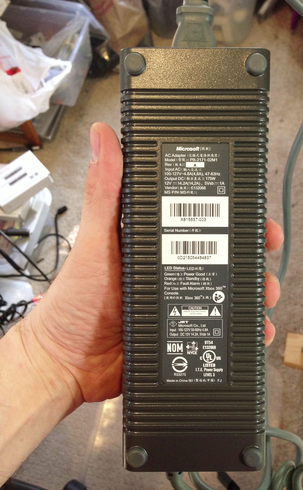 So this is why I like the XBOX360 power supply bricks: they’re compact and ‘finished’ looking, they deliver a hefty deliver 14-16 Amps, and they can be had for $20. It’s the combination of all three of these things that makes them a good option.