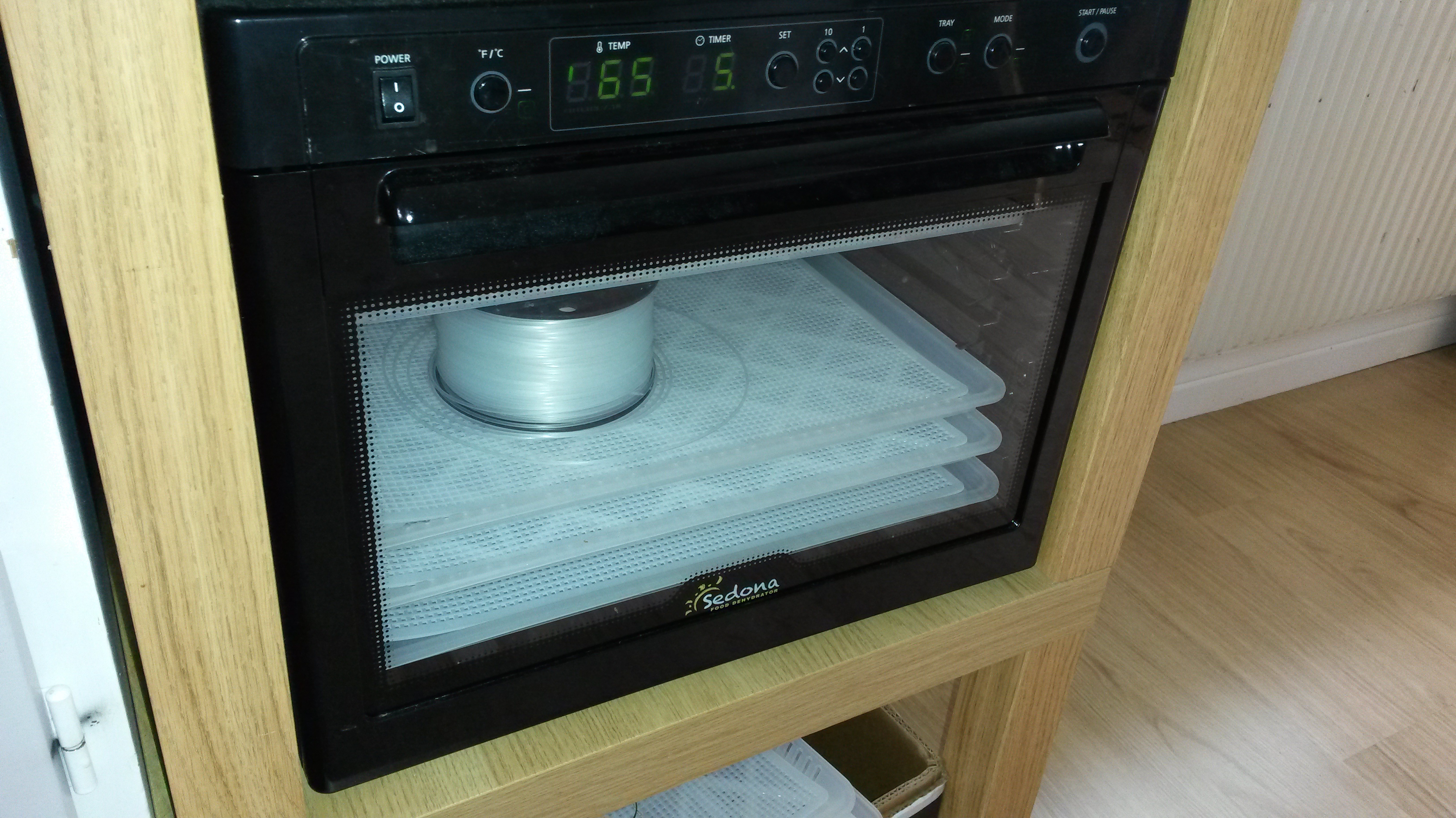 Using wife’s food dehydrator to dry my filament, will be interesting to see how well it work.