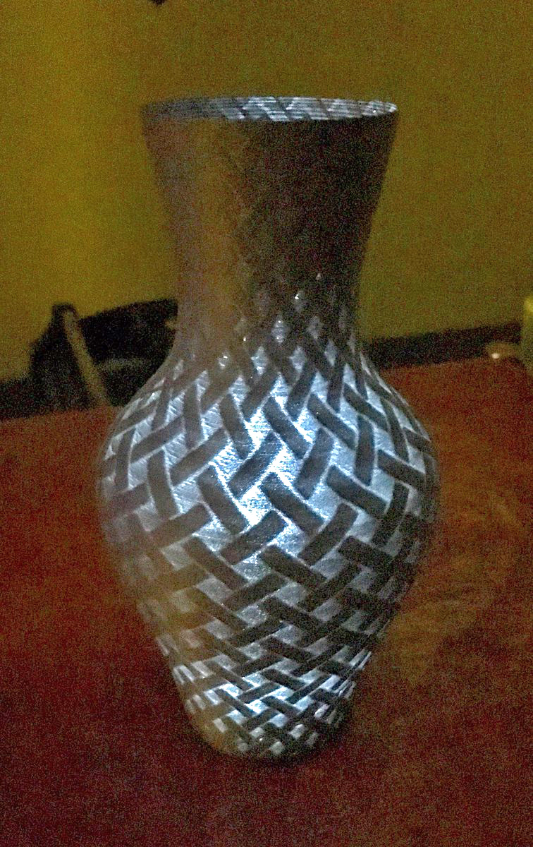 Image: Ben Malouf (@benmalouf on twitter)'s rather fine velocity painted vase in @Proto-pasta Magnetic Iron on a TAZ 6.