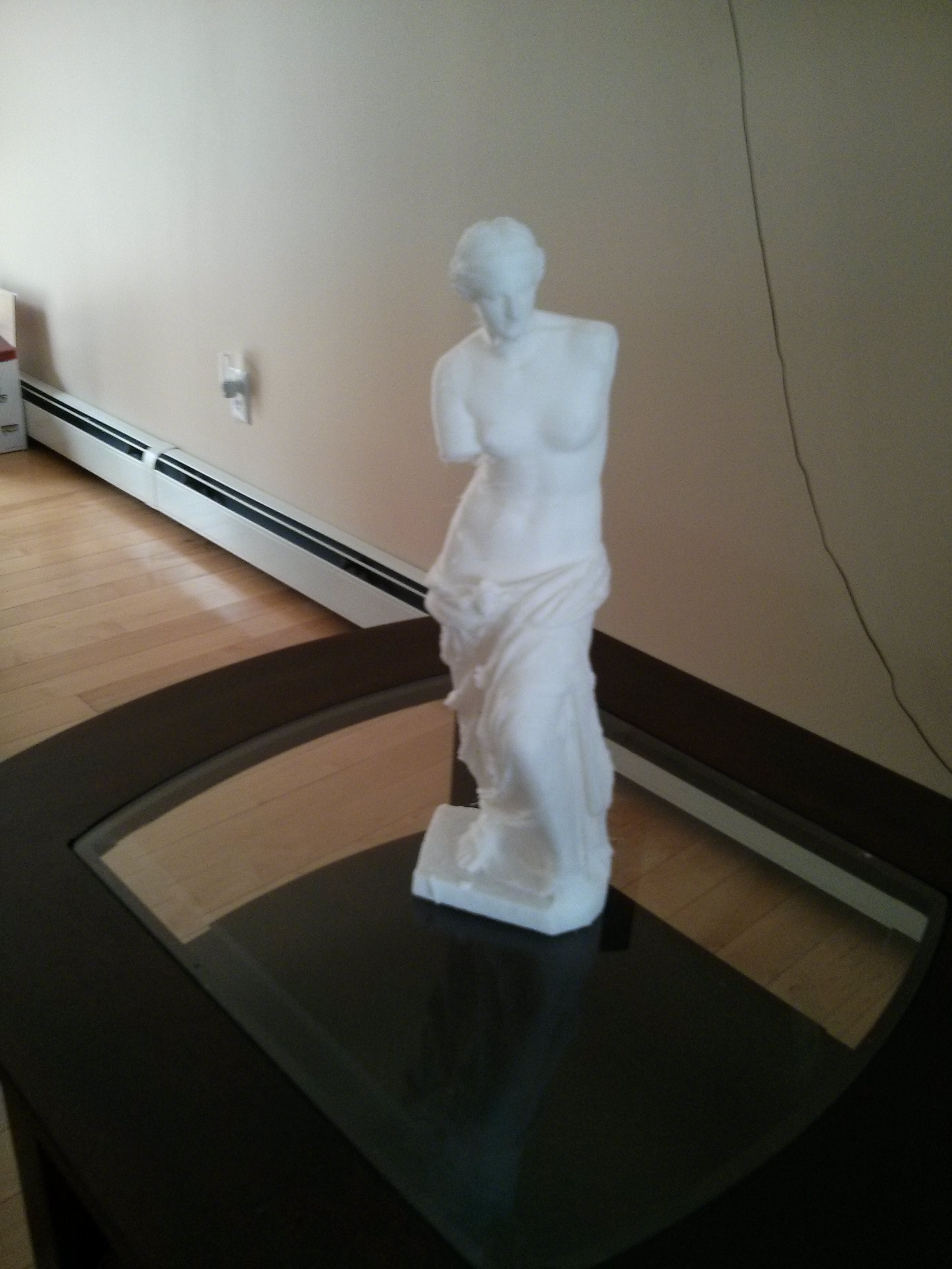 Venus de milo, took 70 hours to print, 40cm, printed in one piece on modified printrbot simple 2014, the printing head jammed twice, had to drill it, repetier crashed once. I managed to restart the print without much visible artifacts.