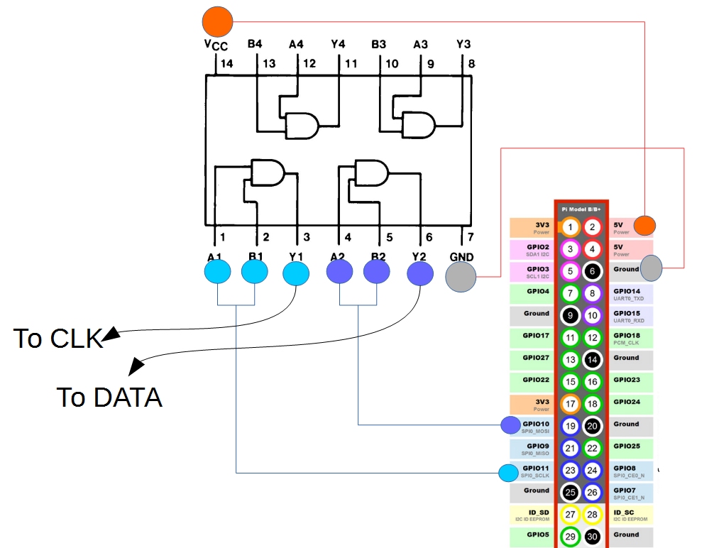 Voltage Level Shifting for APA102/SK9822 ! I use an RPI for most of my large LED Installations, and have always used a NULL pixel very close to the RPI as the voltage level shifter. However this has its limitations. I could never get anything higher than 10-12Mhz with a 2 meter cable. Last night I tried using a LS74HC08 (https://www.nxp.com/documents/data_sheet/74HC_HCT08.pdf a simple cheap Quad AND gate). I tied 2 inputs of 2 gates together. One gate drove the CLK and the other drove the DATA lines. I have the IC connected to the “+5V” & “GND” of the Rpi. Was able to drive a 300 pixel panel that I made with a 1.5m cable(CAT5 with data and clock wrapped in GND) at 15-20mhz !!! This could be used to drive WS2812(although its overkill) on any 3.3v micro controller as well!