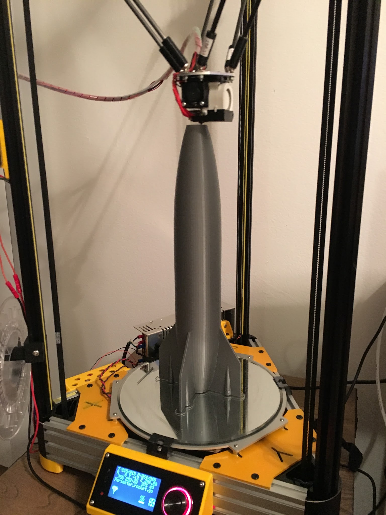 Wanted to try and use most of the Z-height on my Tria and do it relatively fast. Single perimeter spiral print in Colorfabb PLA/PHA. 40mm/s, 215C, and 80% cooling for the entire print at 0.2mm layer height. In total it took about 4.5 hours and is 430mm tall. Surface finish is impeccable everywhere.