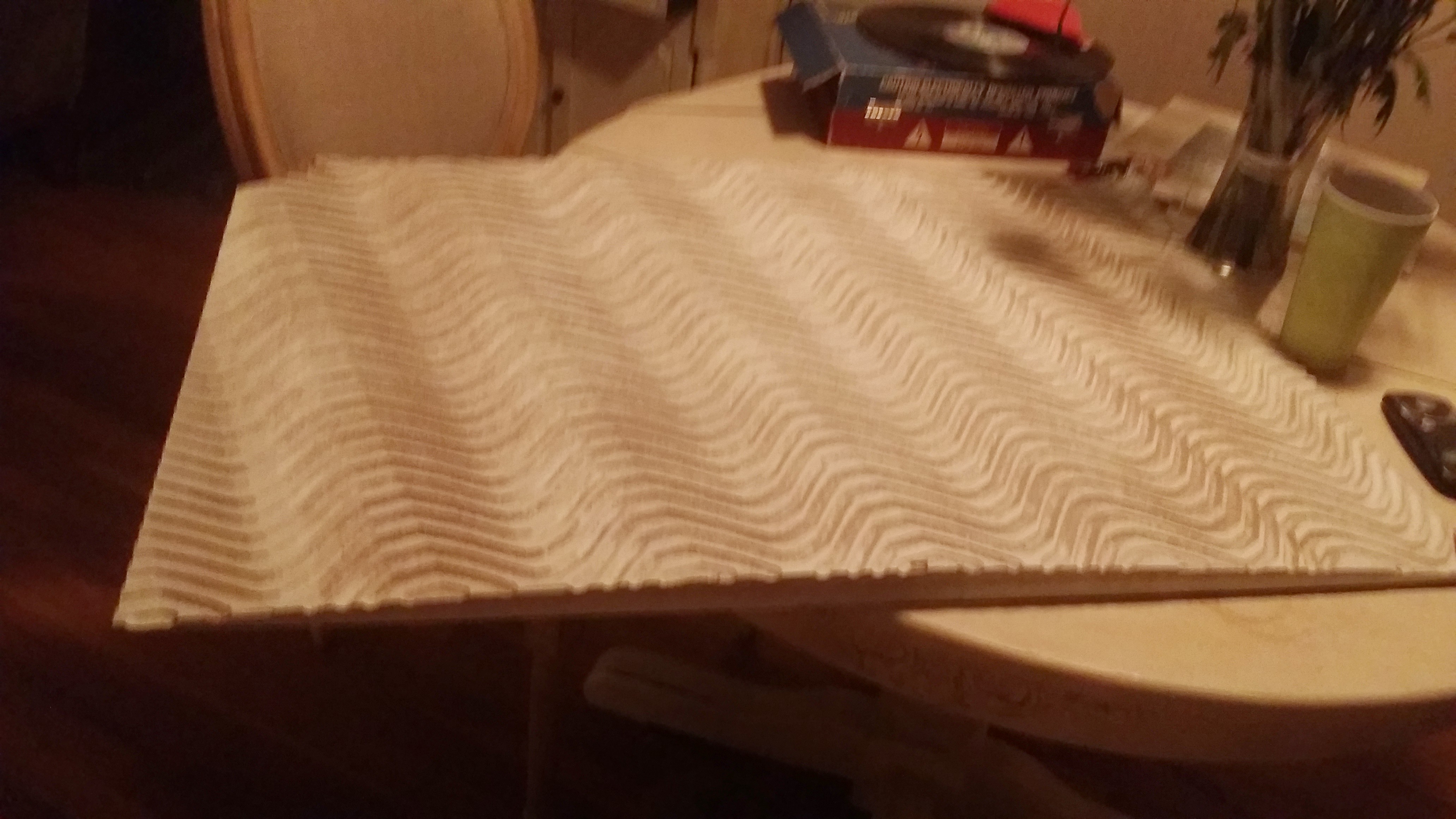 Wave board. 1.25 mdf, slopes down to .25 at the edges.