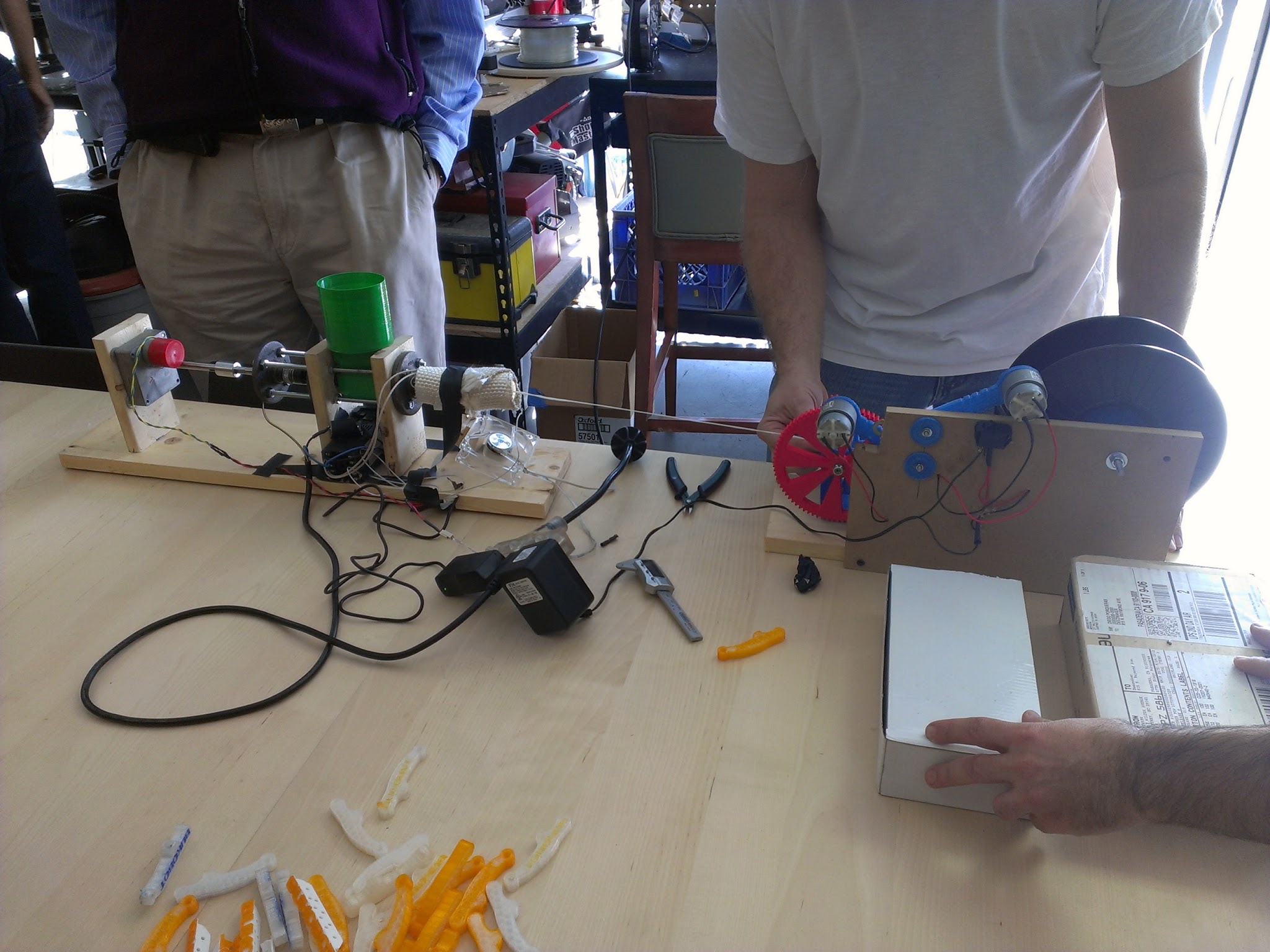 We had a filastruder running at the 3d printing meetup and the Deezmaker shop today.