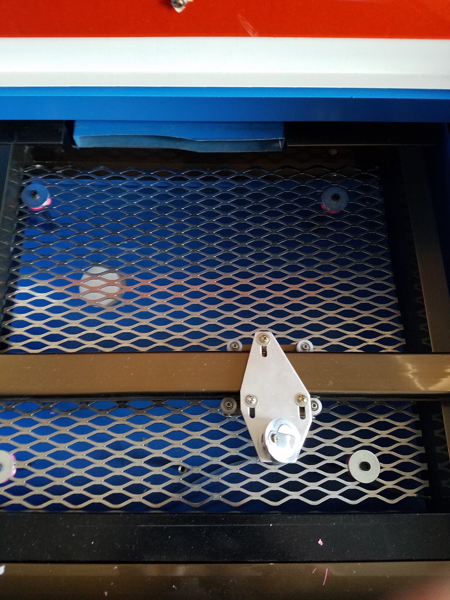 The digital k40 I got had 4 screws holding the vent in. Given how successful the first machine was, I just removed them and ditched the entire vent.