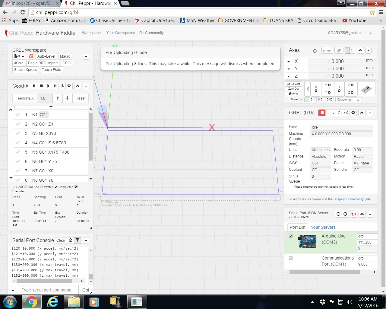 jog works on the stepper motor, and i sent a gcode thru the serial port and the stepper moved. but to run a program , it says its loading to buffer but nothing happens. if the board is on pause, how do you un pause it?