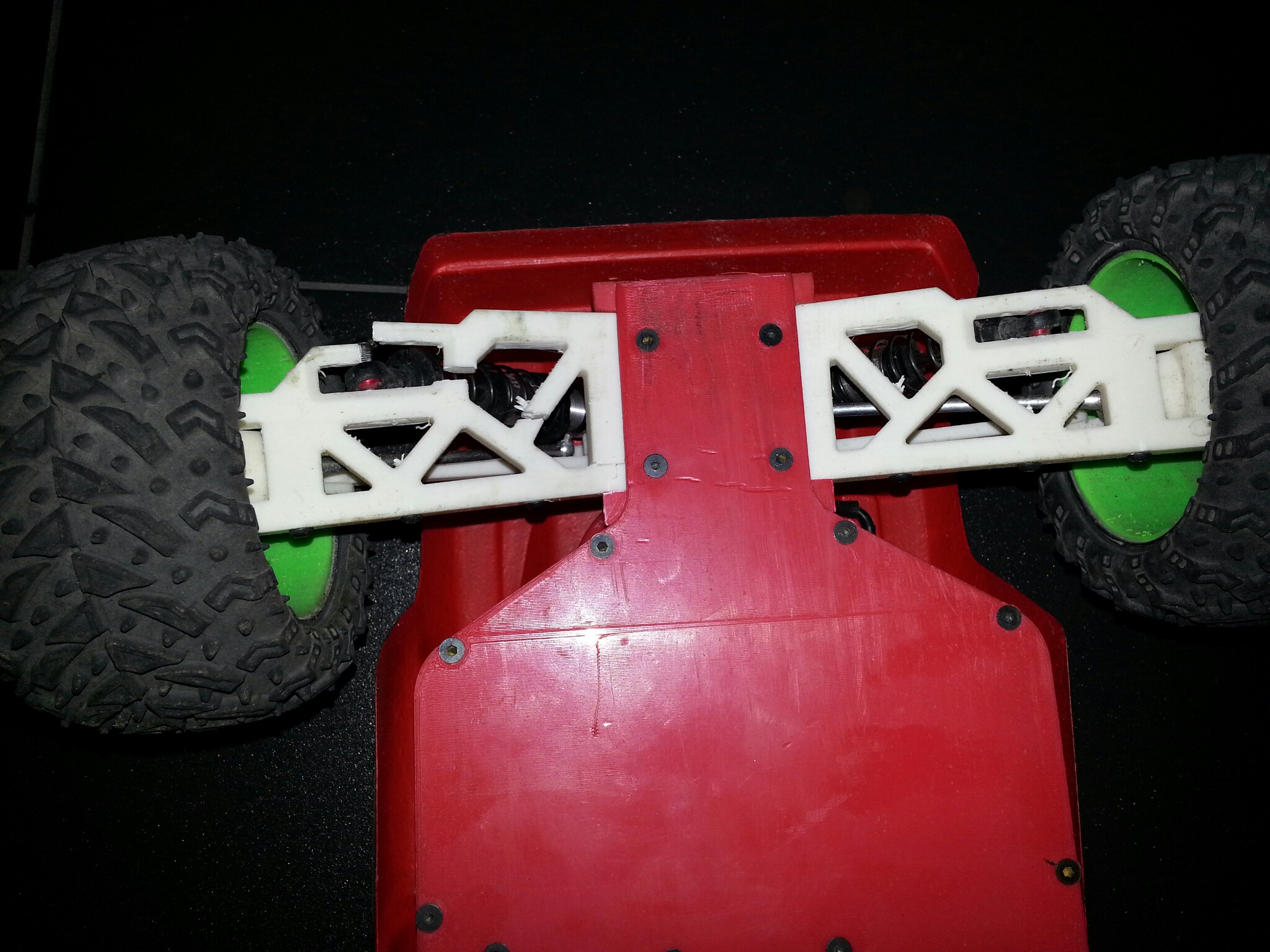 It looks like the shock may have initiated the crack. Are the screws for the shocks long enough to go through both sides on the arm?