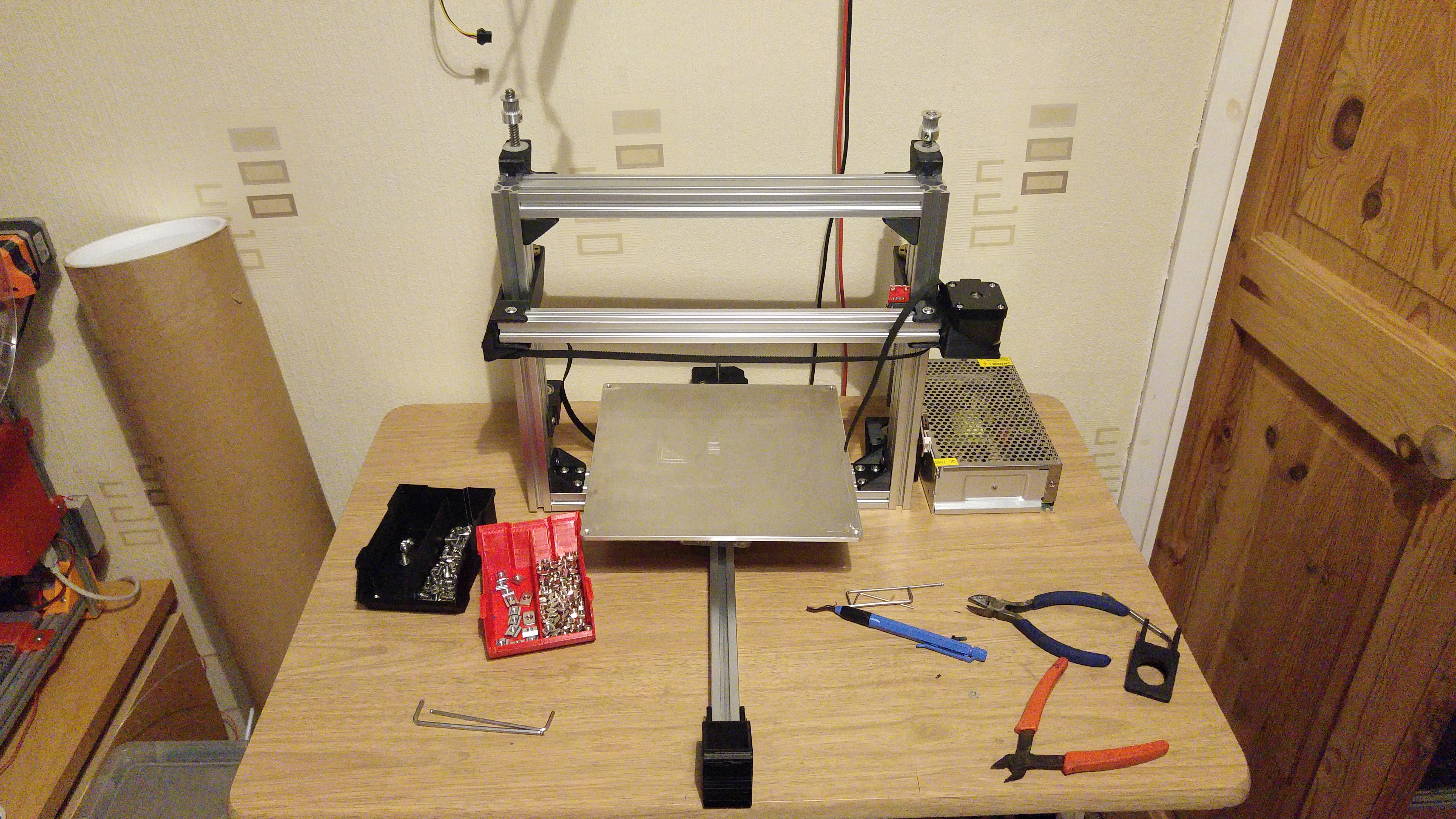 Welp, the Extrusions for the #AX-03-Railgun came in today. I’d been printing the parts in expectation of it. All parts printed in 3D Prima Value ABS. This took about an hour and a half to put together. The bed plate is one that I have hanging around and is just for show. I haven’t got the rails yet, nor the other needed parts but I’m hoping to have it running by the middle of next month or so.