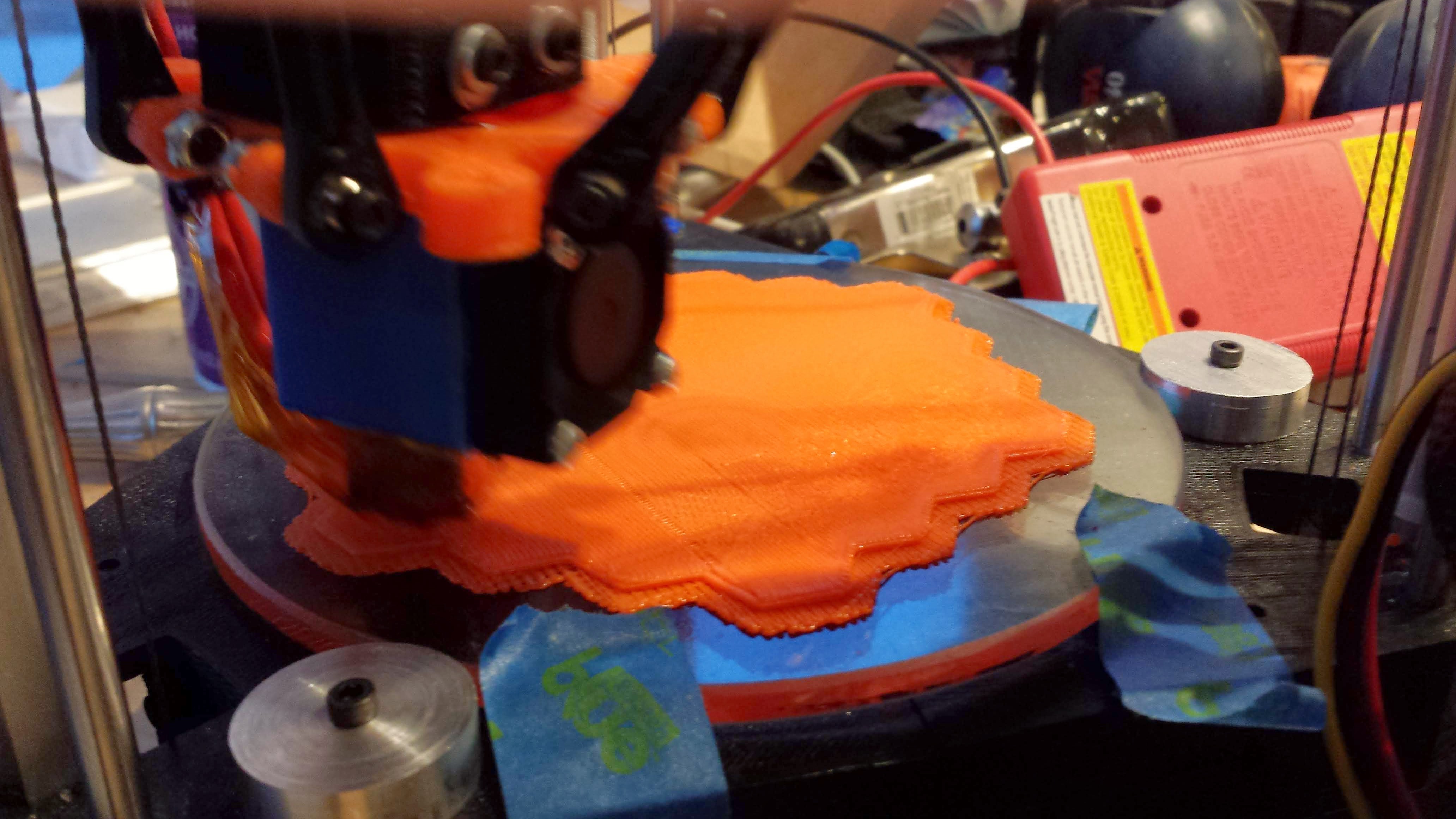 Whadda Racket! I’d never HEARD the printer make a sound like this…upon observation, it was due to the honeycomb structure lining up with the Delta’s towers and creating a resonance.