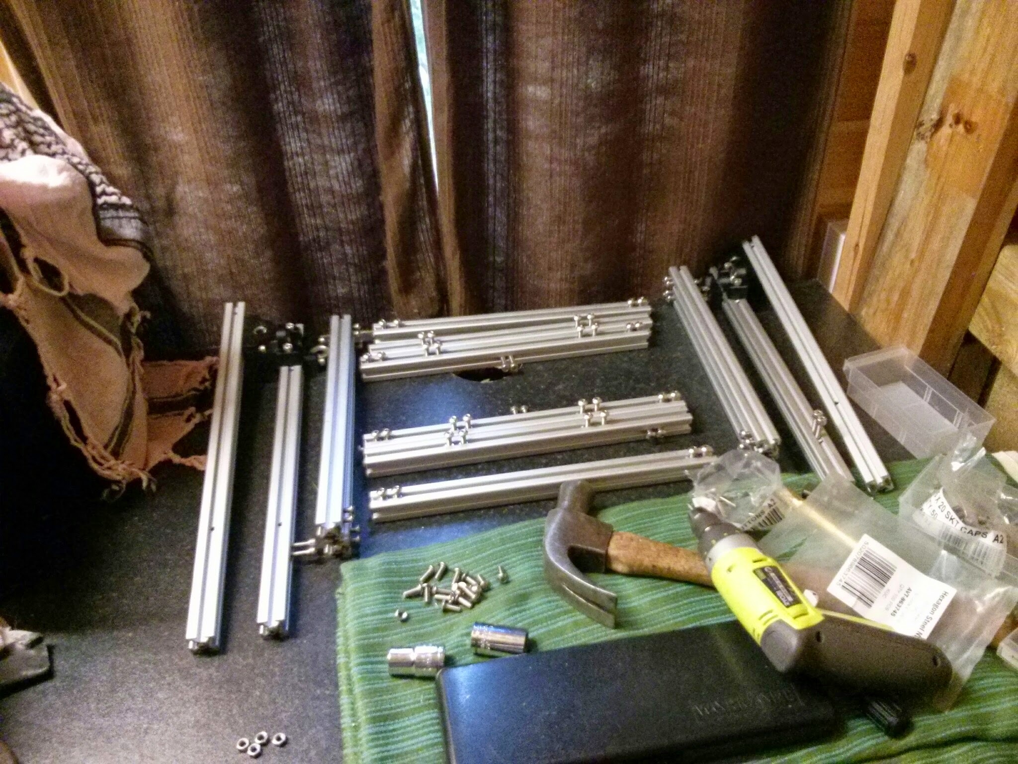 I then made a load more of my cheap tnuts (grind two edges down a bit off normal M5 nuts) and loaded them into the extrusions and put the thing together.