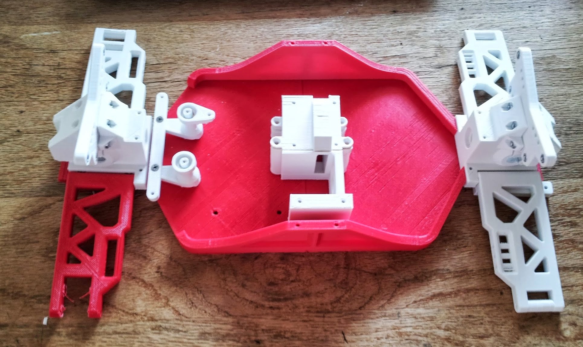 Aside: Update on my progress. Printing the wishbones vertically helped prevent clogging issues and the front, rear, and central diffs have printed very nicely as well.
