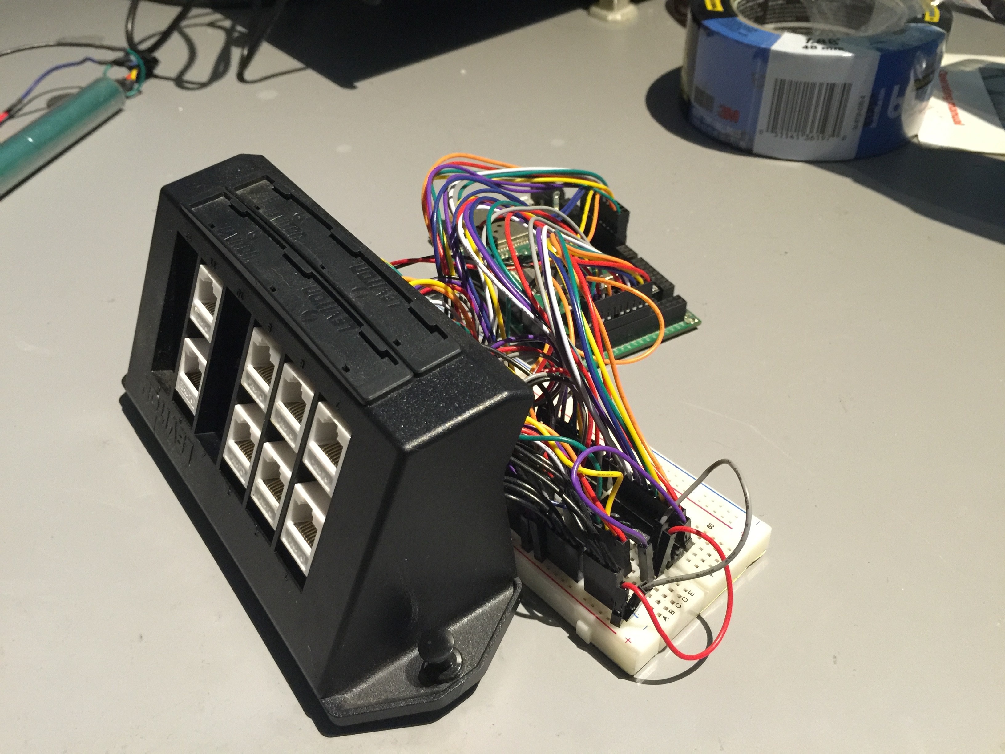 The breadboard has 4 74HCT245’s, used for level shifting the digix’s 3.3v signals to 5 - each cat 5 cable carried data for four strips.