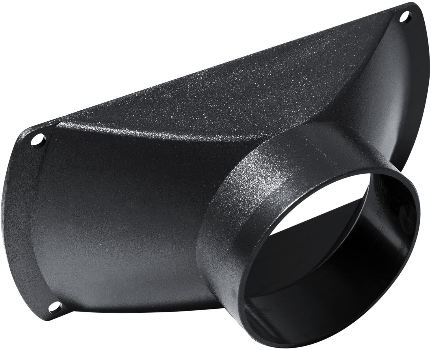 I bought the 4" bilge blower, ~250cfm and a 4" flex hose. Pinched that directly into the opening on the rear and liberal use of the aluminum (real) duct tape.