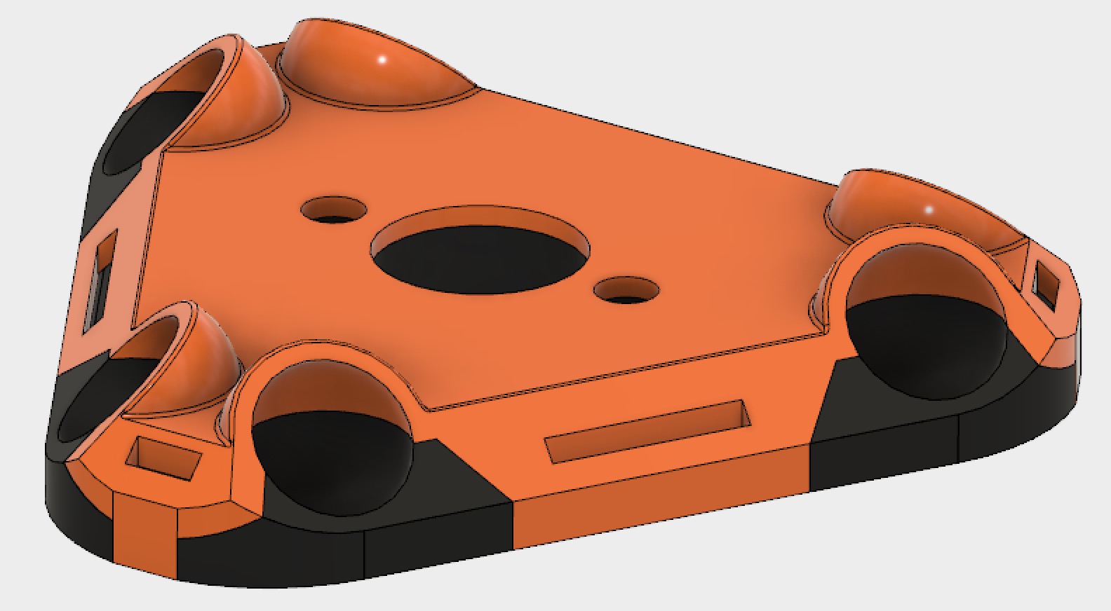 This platform is snap fitted together using an upper and lower part to create a really tight socket that won’t get loose. We’re actually thinking of shrinking it even more for a smaller distance between the pivot points. Currently they’re 30mm apart, but thinking of going down to 25mm or maybe even 20mm to increase print space even more. The arms will end up pivoting almost literally against the hotend itself - making for a real micro effector.