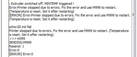 while trying to reset bed leveling, I accidentally drove the e3d tip head into the clip that hold the glass… saw a little smoke came out of the extruder so I powered off… now in pronterface I get this message. anyone knows what this means and how to reset it?