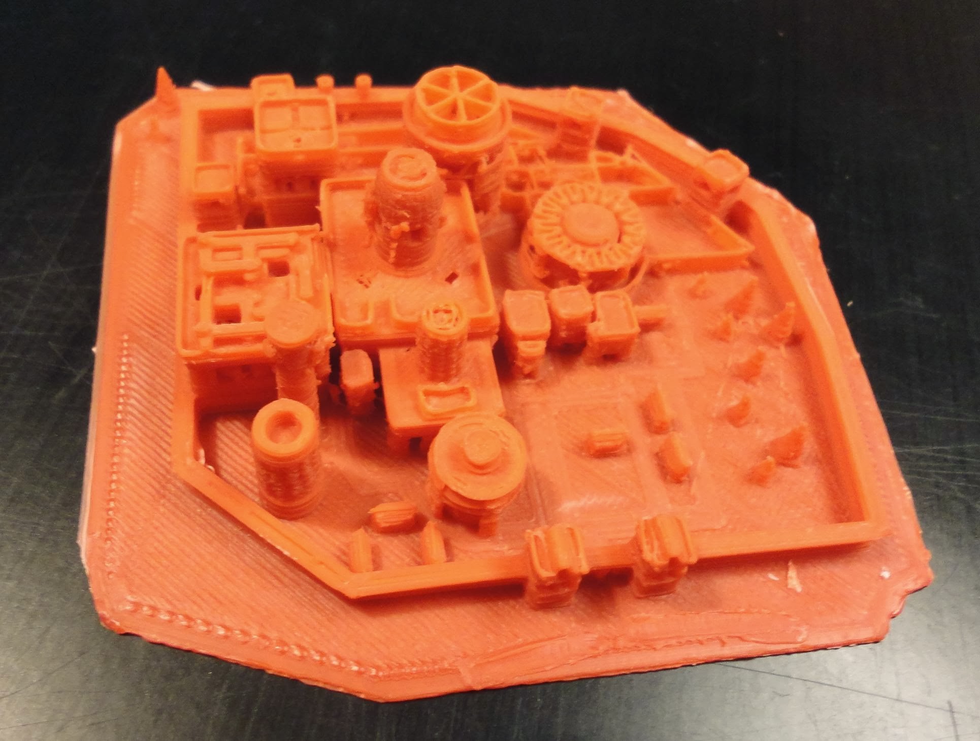 Winterfell (off Thingiverse) in red ABS. No idea why it looks orange in the photo. I need to put the 0.2 nozzle on that I got from @Jerrill_Johnson .