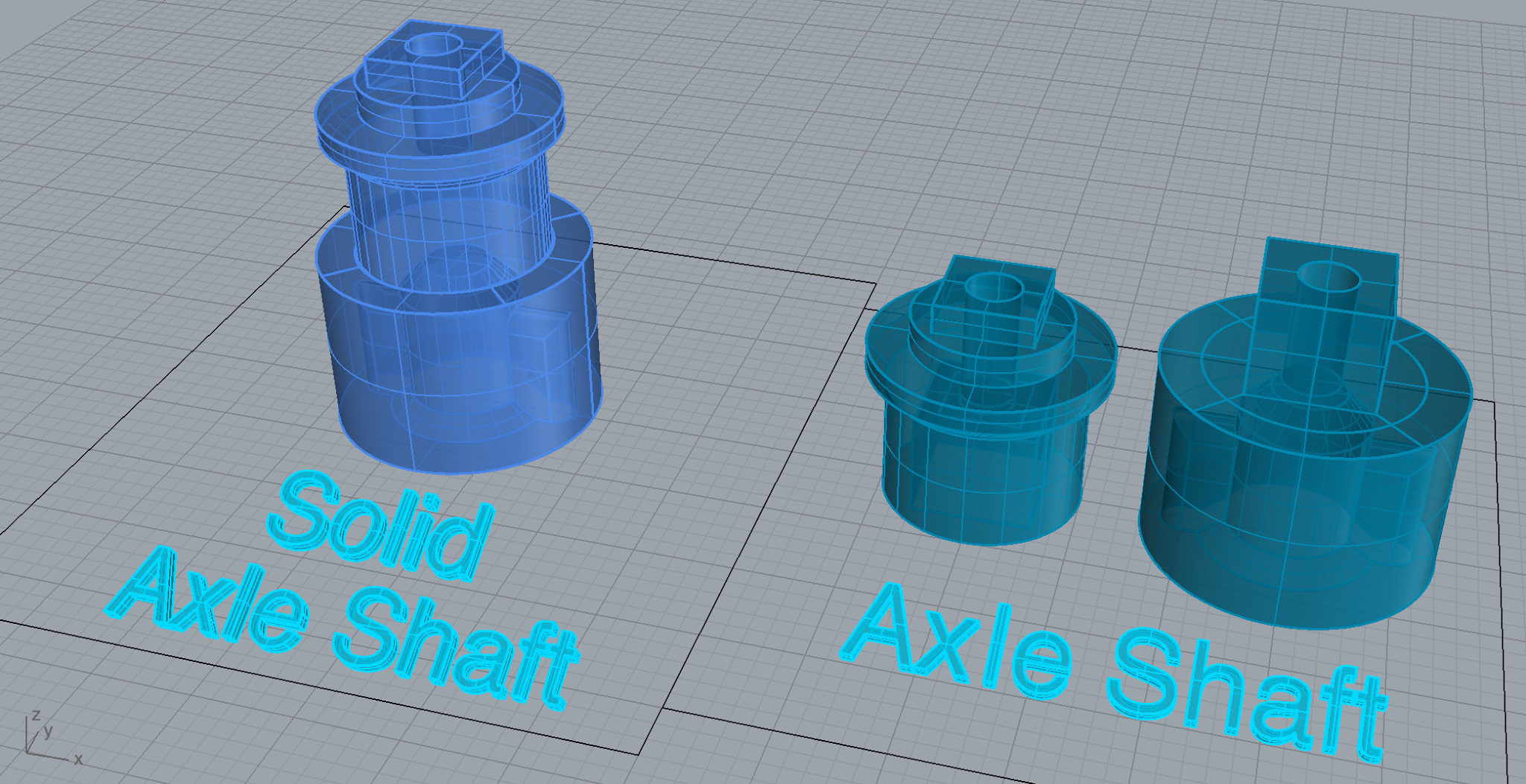 With the intention to make the axel shafts to the diff houses more durable to wear and tear I’ve made two new versions of it. One that are built like the input gears instead. The other version is solid and printed in one part, but to be able to put on the bearing, you have to pause mid print to put it on.
