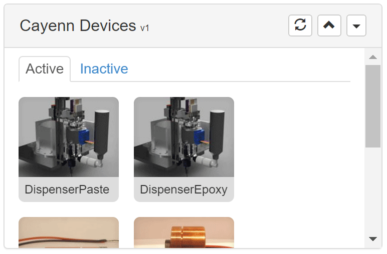 With the new Cayenn protocol, your add-on devices are new toolheads. The device announces which widget is the software UI. In that widget you can define a 3D object to represent the toolhead so it appears in the main 3D viewer. Here’s the concept for a dispenser. This is the preview of the 3D object for the dispenser inside the Cayenn control panel widget.