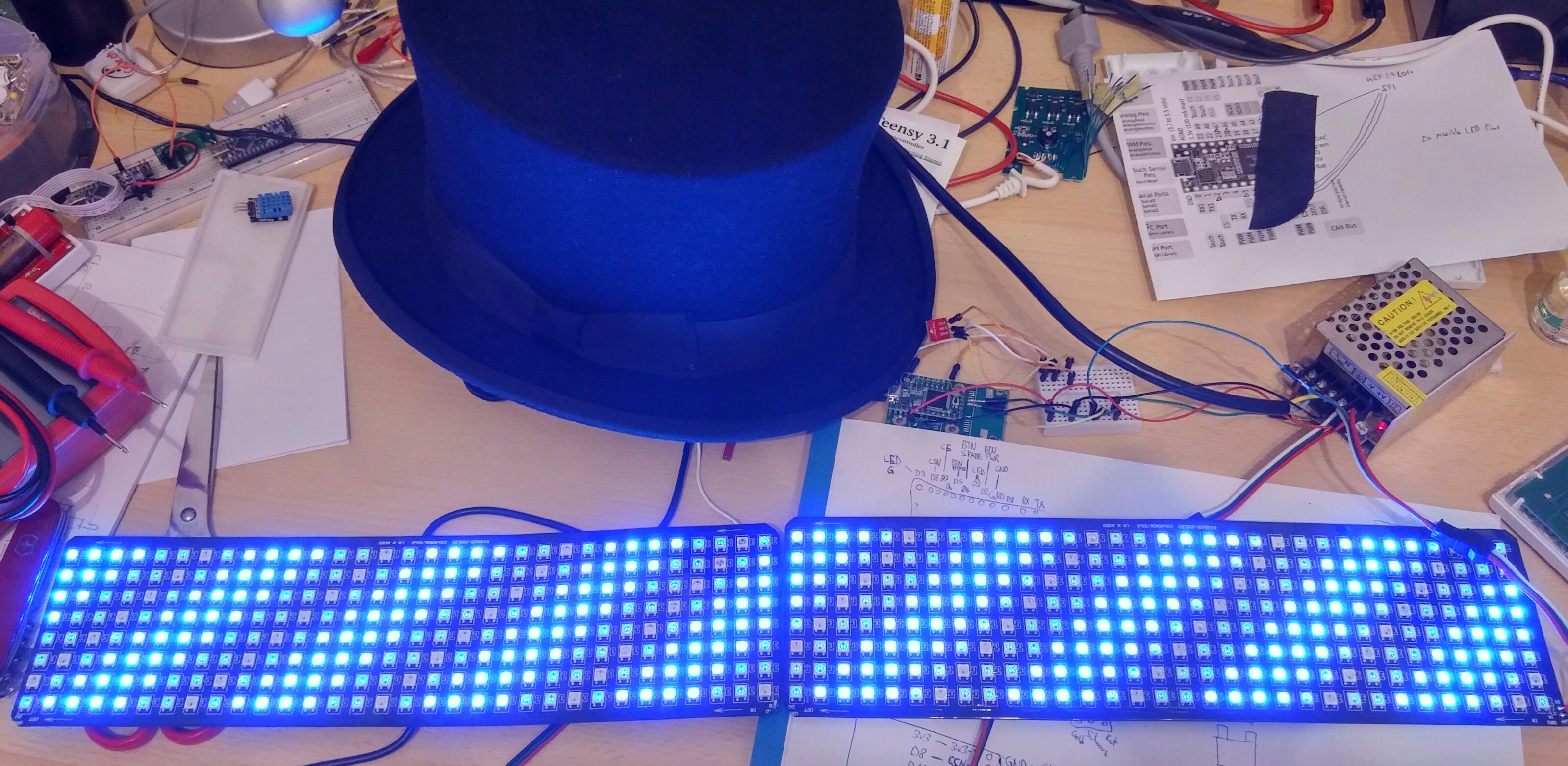 Work in progress. The flexible LED Matrices will go around the top hat soon.