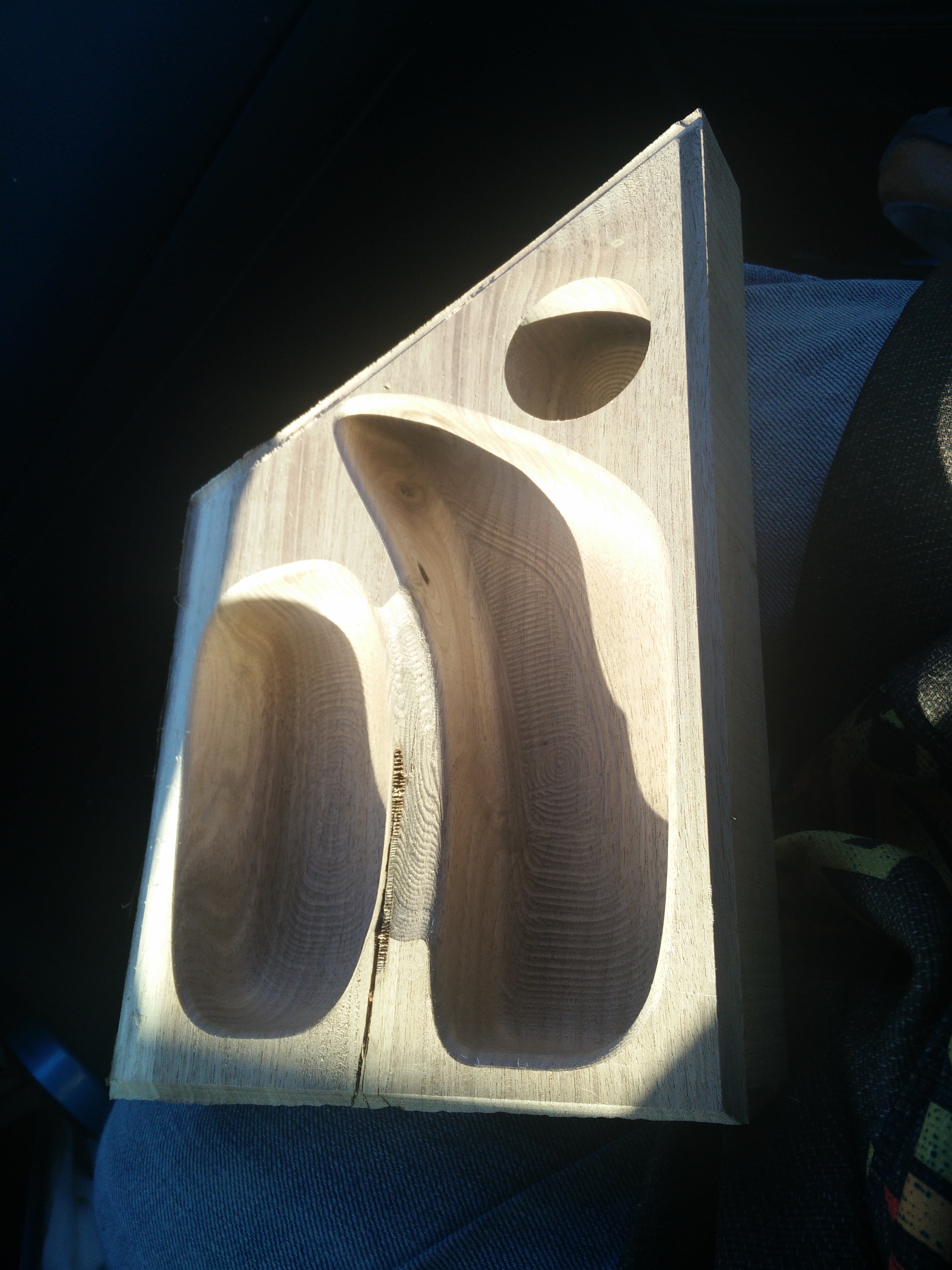 Working on a little serving dish/tray with insert for metal dressing cup. Can you believe someone was going to burn this piece of walnut.
