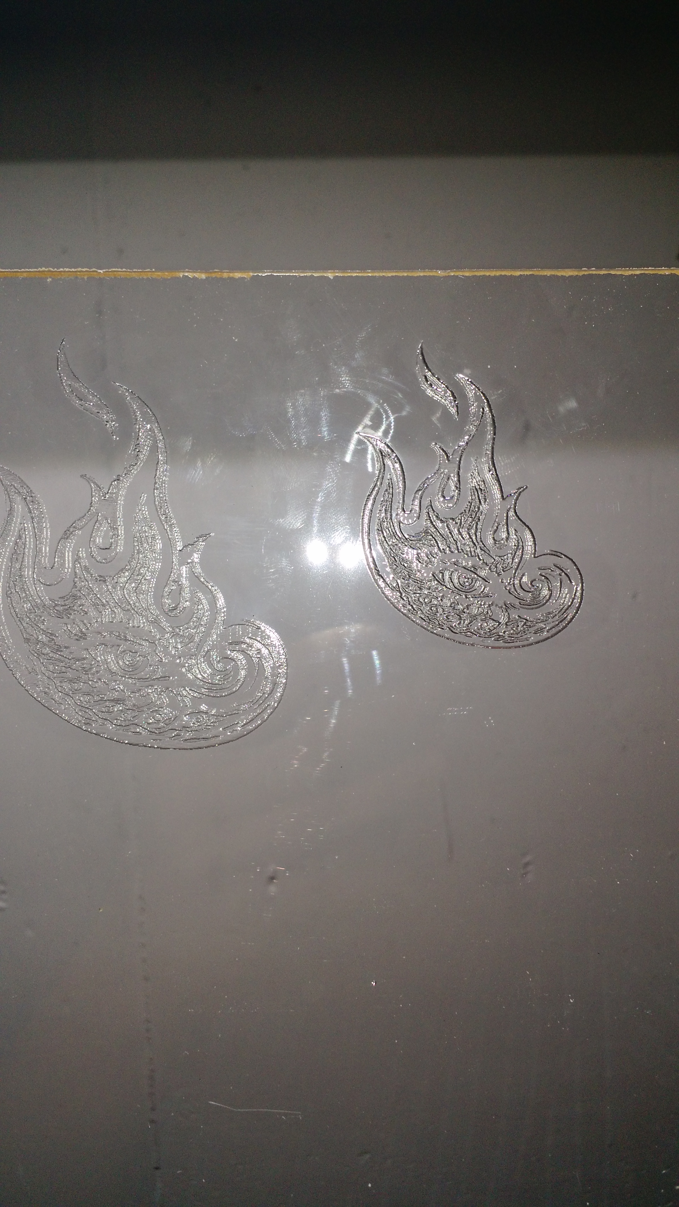 @Alex_Krause my laser cutter can’t do raster engraving, so I usually use about 2-3mA Power and use normal engraving at speed 1500mm/min… that always ends up very frosted looking.