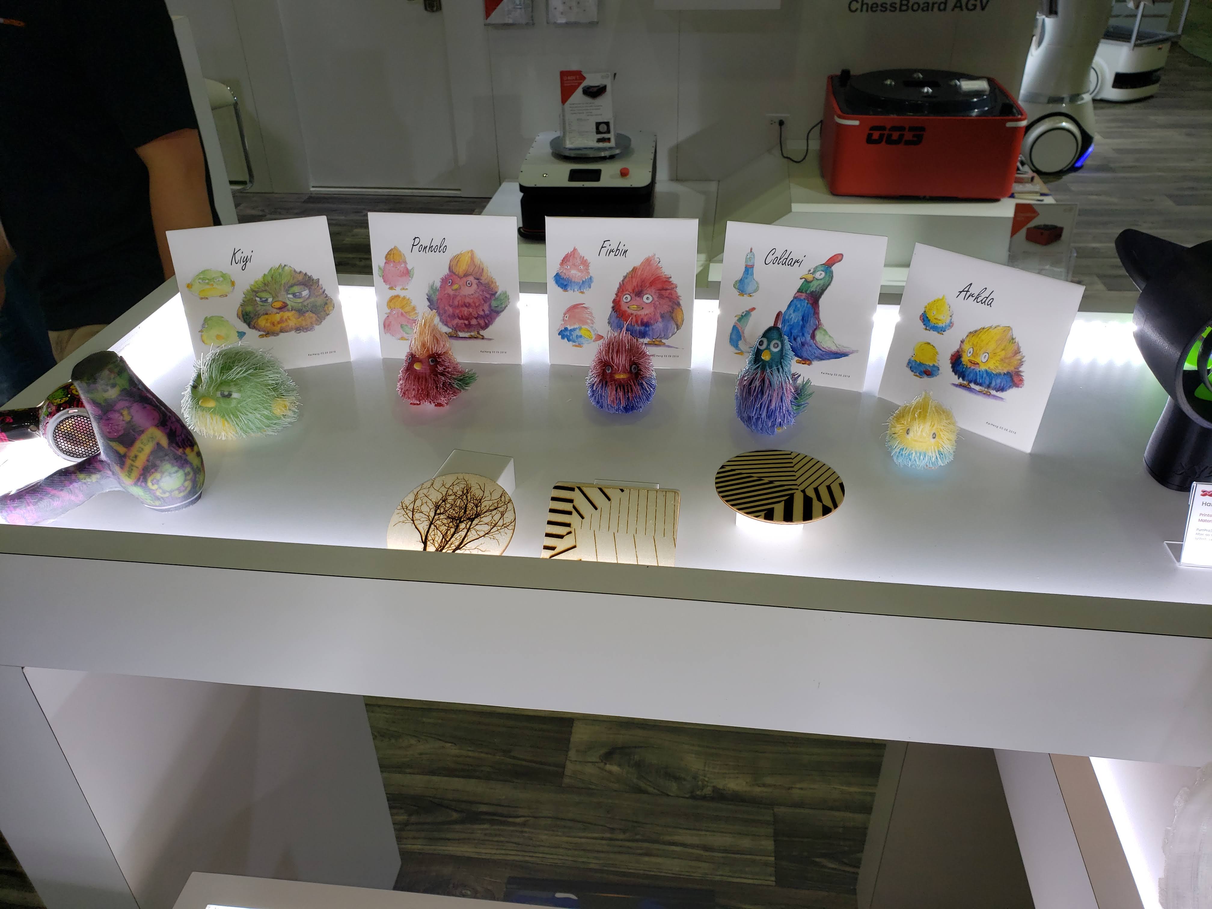 XYZ printing booth. I love the hairy birds. The Mona Lisa prints are actually chain mesh not lithopanes. IMTS 2018 is over, and I am so worn out, but it was a great show.
