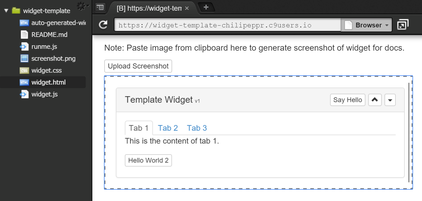 You can now paste your clipboard to generate a screenshot on your widgets so your docs are nicer. Do this on the homepage of runme.js inside Cloud9.