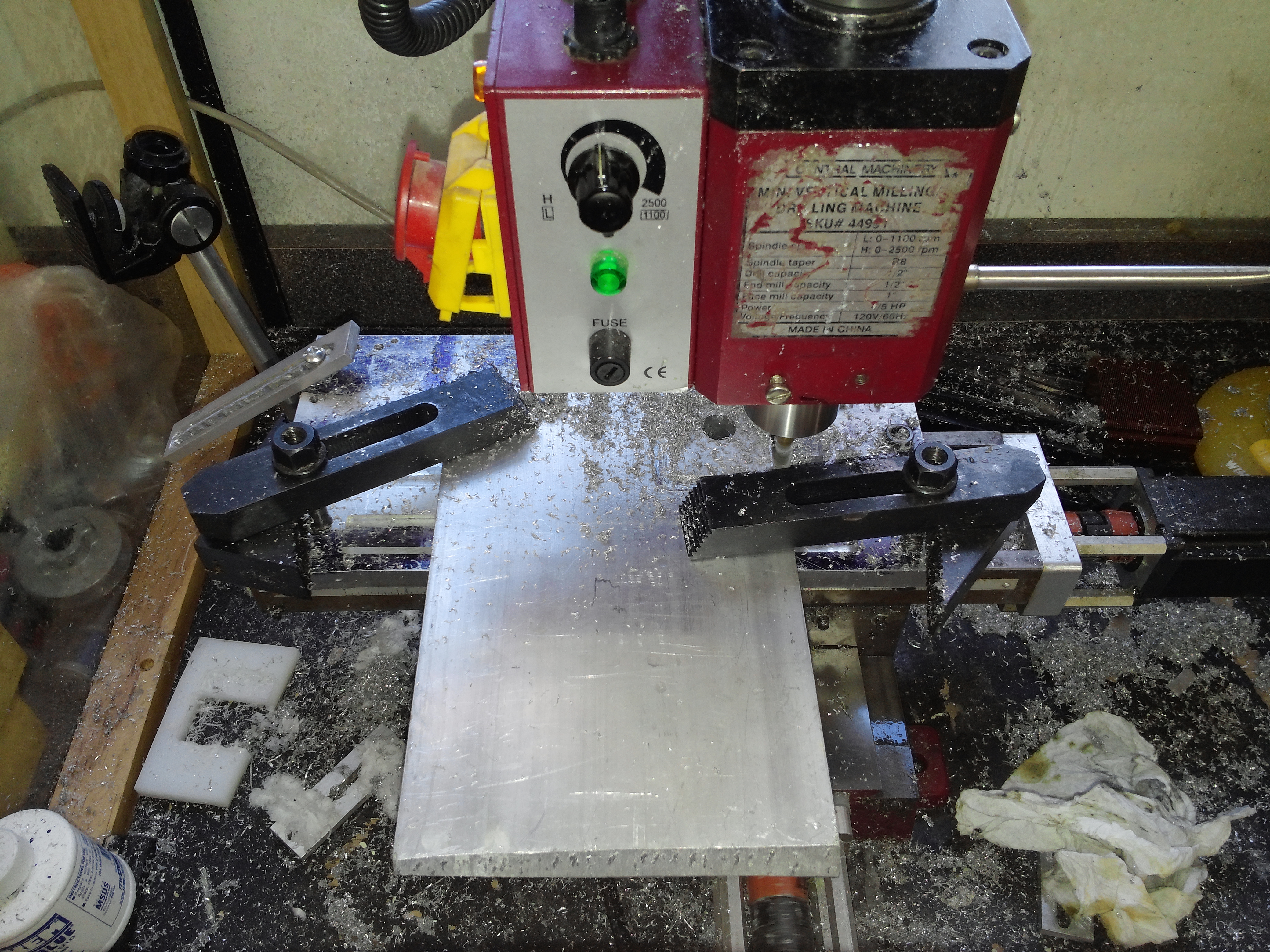Z-axis -I was not happy with motor mounts and acme rod alignment with sheet metal mounts, so milling replacements for CNC router. I still expect to get it all mounted, and get some test cuts in today!